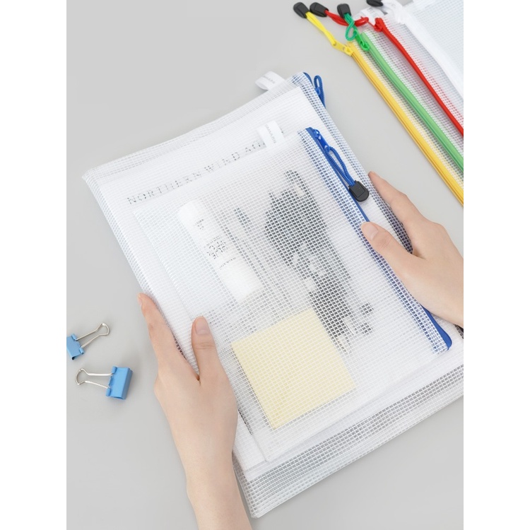Mesh Zipper Bag Various size & Colors READY STOCK Grid PVC Zipper Bag For Storage & Carry Documents