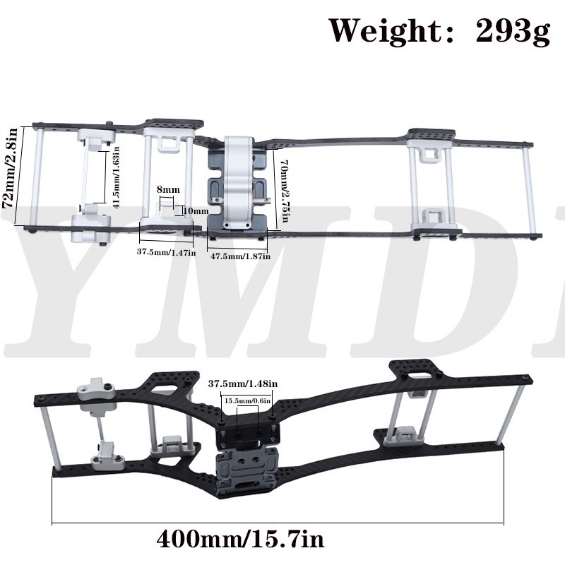 Metal LCG Chassis Lower Center of Gravity Carbon Fiber Frame Rails Girders Gearbox for 1/10 RC Crawler TRX4 Axial SCX10 Capra RGT EX86100 Upgrade