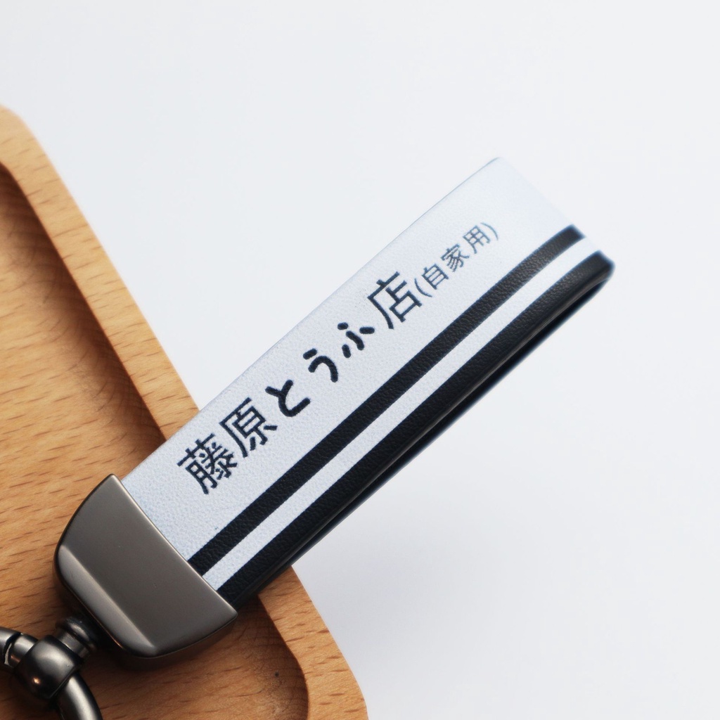 Metal Leather Car Keychain Initial D Fujiwara Tofu Shop JDM Japanese Kanji Key Chain for Toyota Corolla Trueno GT-Apex (