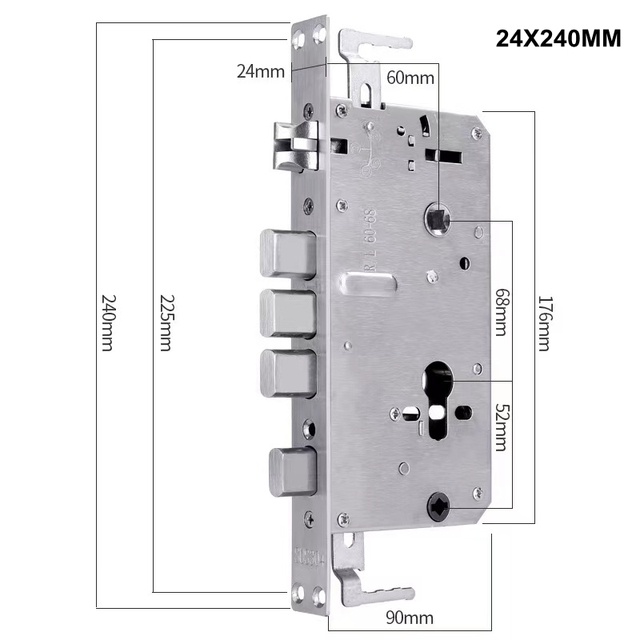 Metal Stainless Steel Electronic Lock Body 6068 Fingerprint Lock 240X24MM Square Bolt And Cylindrical Bolt
