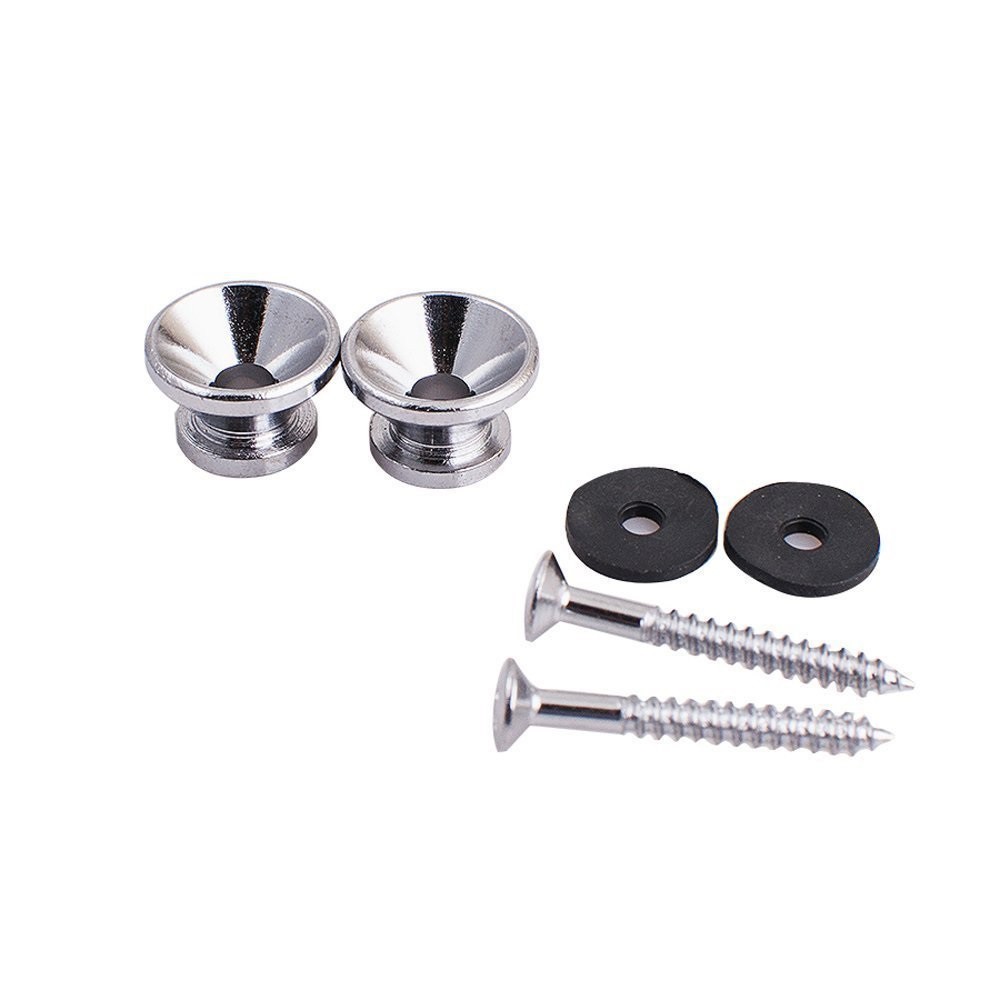 Metal Strap Lock Buttons End Pins with Mounting Screws For Electric Acoustic Guitar 2pcs