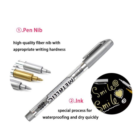 Metallic Color Marker Pen Gold /Silver/Purple/Red/Green Drawing Permanent Marker Signature Craftwork Pen (1PC) Metalic