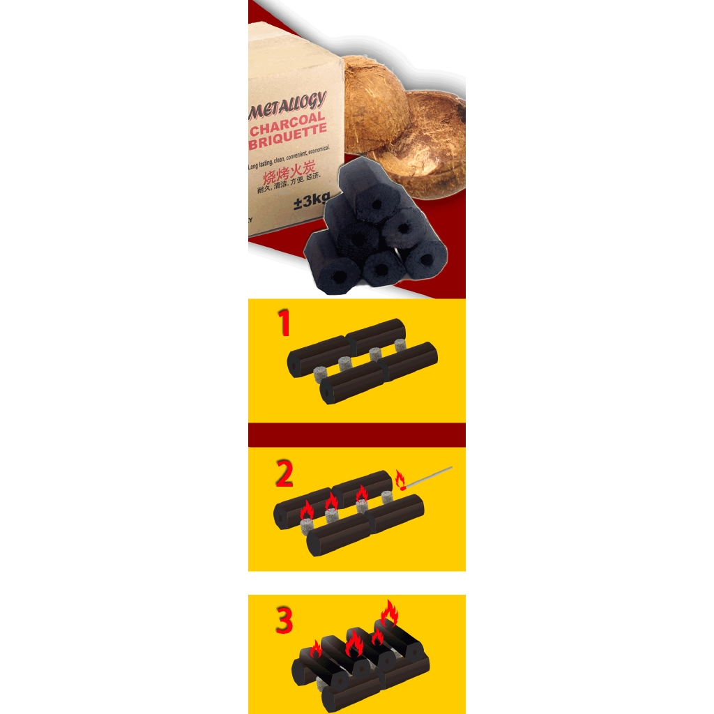 Metallogy 3Kg/5Kg BBQ Batu Arang Flammable Coconut Charcoal Hexagonal/ Activated Carbon