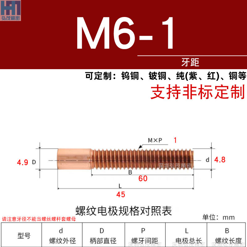 Metric Copper Red Copper Threaded Electrode M2 M3 M4 M5 M6 M8-M20 Spark Machine Shaking Thread Screw Electrode