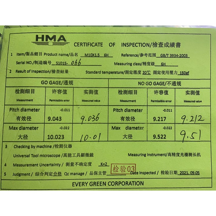 Metric thread plug gauge M1 1.2 1.4 1.6 1.8 M2 2.5 3 45 6 8 10 12-24 * 0.25 0.3 0.35 0.4 0.5 0.6 0.8 1 through regulati