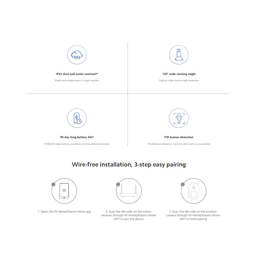 Mi Wireless HD 1080P Smart Outdoor CCTV Camera Battery Version Night Vision 130 Degree Wide Angle Waterproof