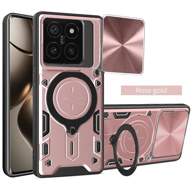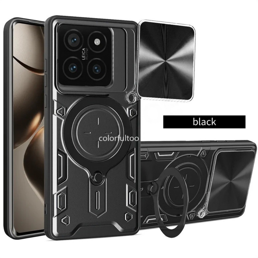 Magnetic Car Ring Holder Case For Xiaomi 15T 14T Pro 14TPro 15TPro Mi15T 5G 2025 Luxury Armor Shockproof Casing Anti-fall Bumper Slide Push Camera Protect Back Cover Hard Cases
