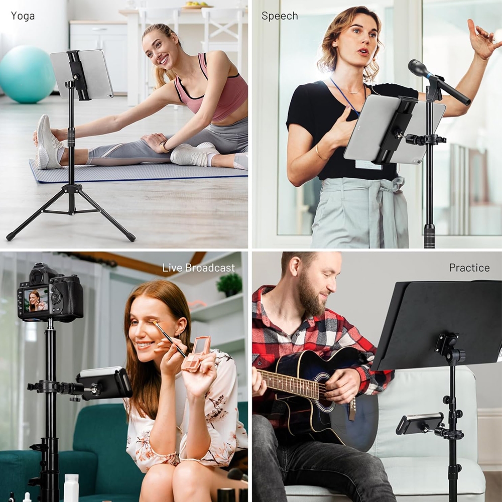 Mic Stand Phone/Tablet Holder, Fits Devices from Screen Size 4.7 to 12.9 Inches, Perfect for Video Recording, Performance, Instrumental Playing, Stage, Studio, House Party Karaoke