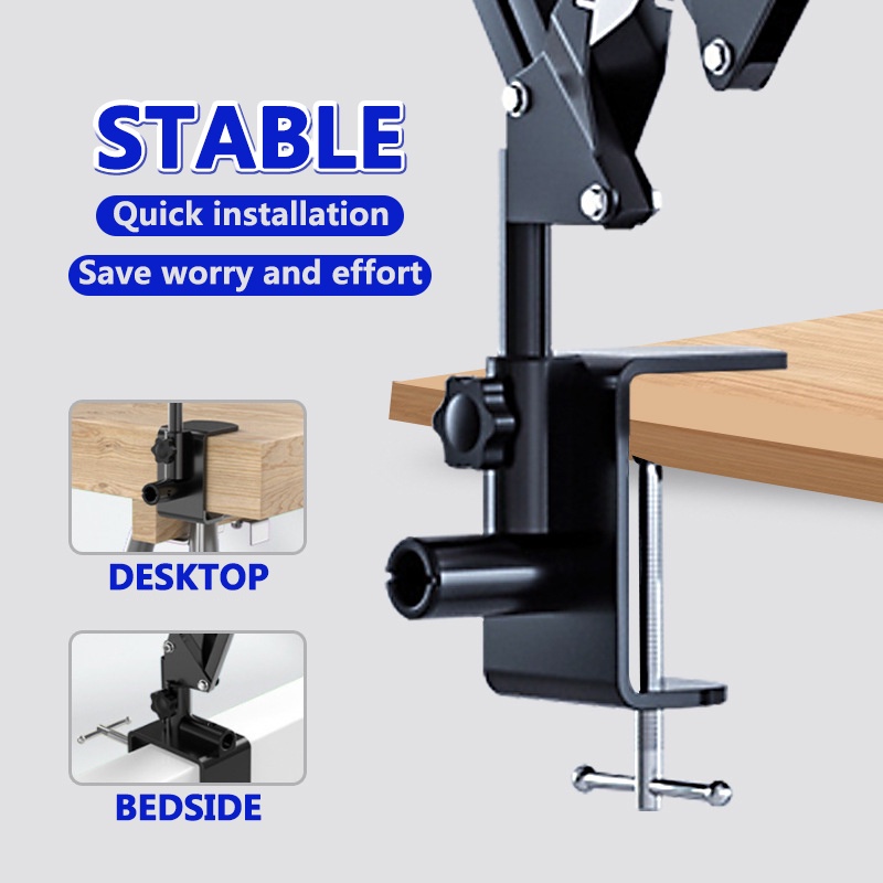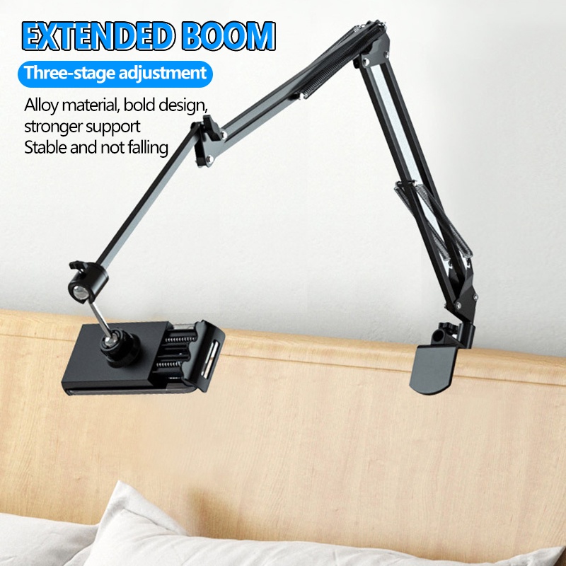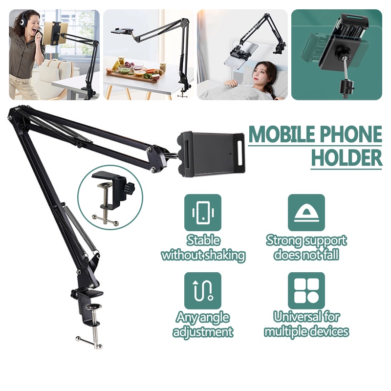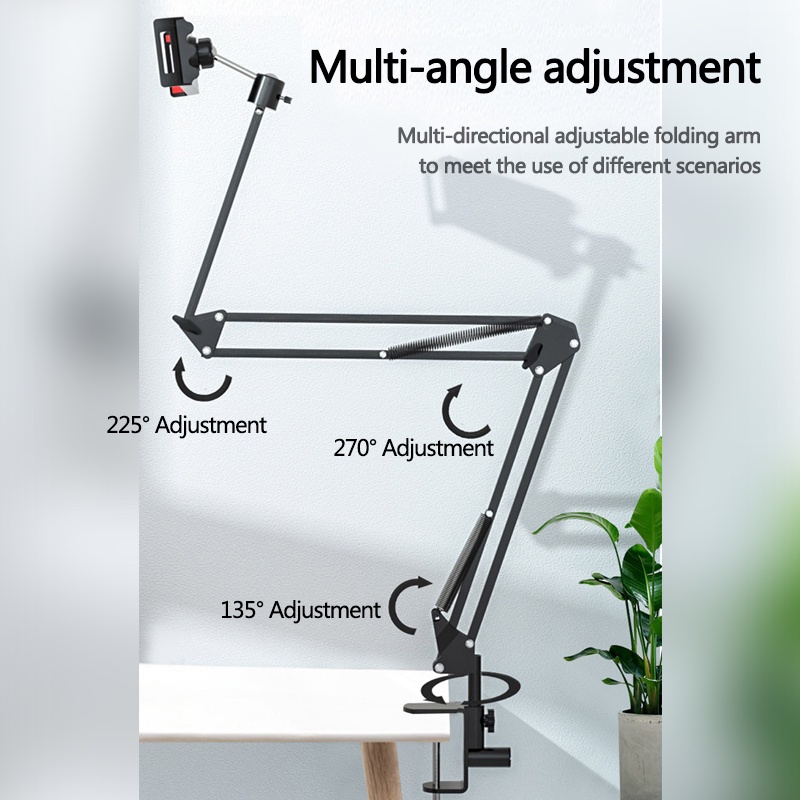 Mic Suspension Boom with Phone Holder Extendable Table Clamp Arm Stand for Live Stream broadcast Record