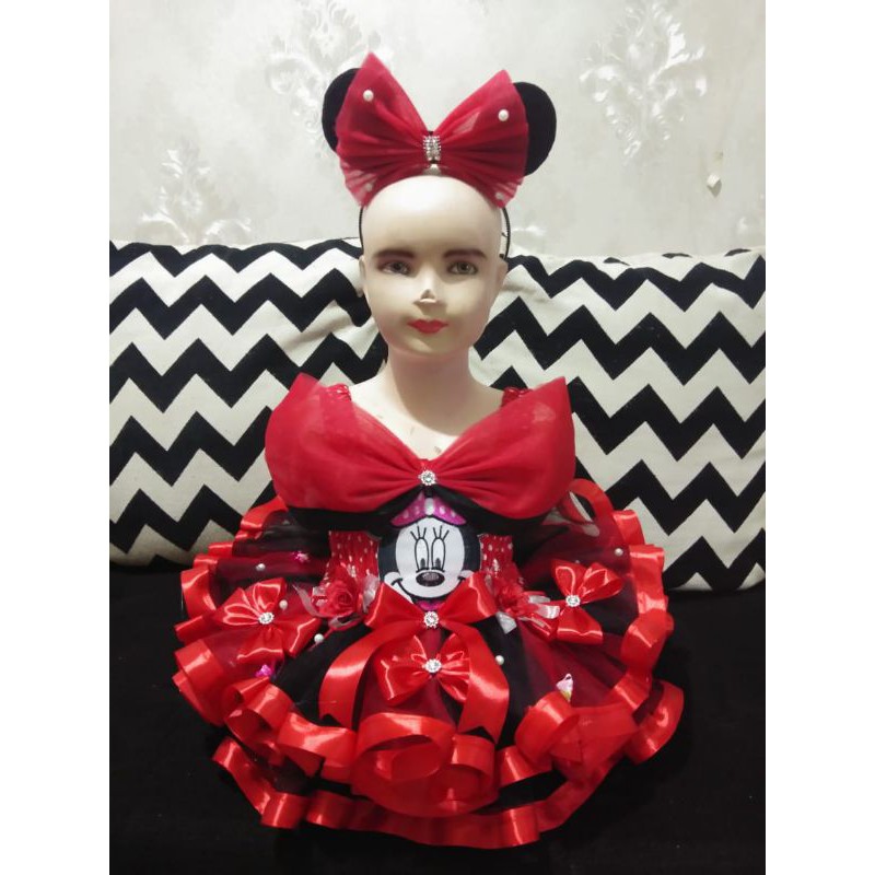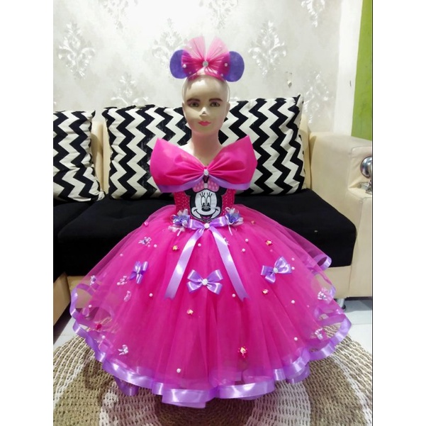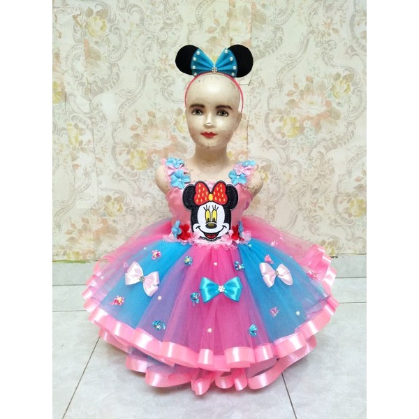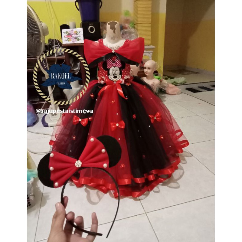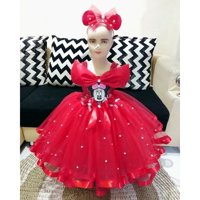 MICKEY MOUSE MINNIE MOUSE THEMED GIRLS' BIRTHDAY PARTY DRESS MINNIE MOUSE CHILDREN'S PARTY DRESS Dress Budak Perempuan Kids Dress Girl Cheongsam Kids Gaun Budak Perempuan
