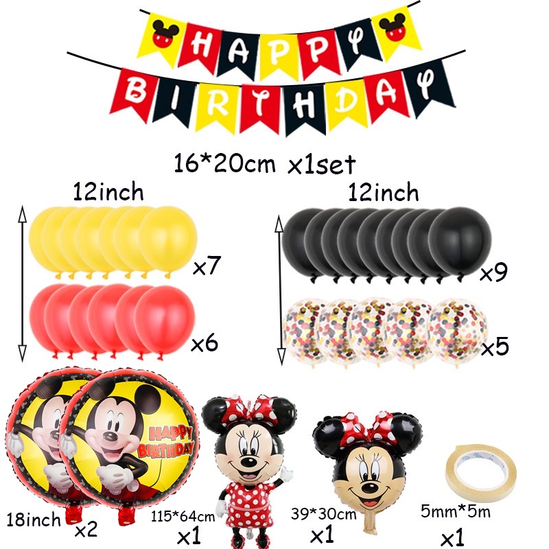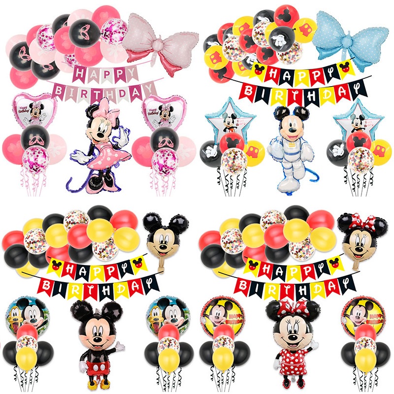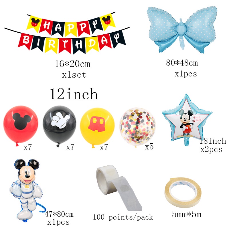 Mickey Mouse Birthday Decorations Set Arch Foil Latex Balloons Mickey Minnie Mouse Kids Happy Birthday Balloon Decor Globos