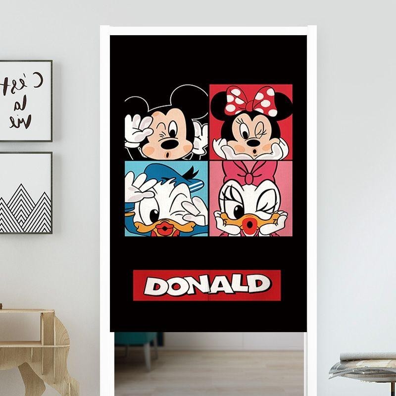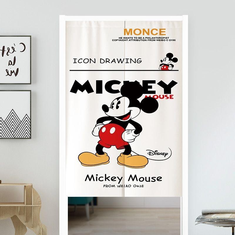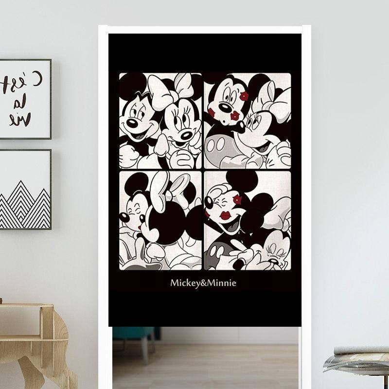 Mickey Mouse and Minnie door curtains without punching children's bedroom curtains living room and kitchen partitions girly heart decoration split with telescopic rod