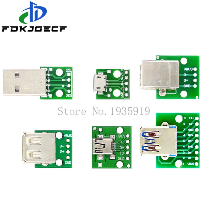 Micro Mini USB USB A Male USB 2.0 3.0 A Female USB B Connector Interface to 2.54mm DIP PCB Converter Adapter Breakout Board