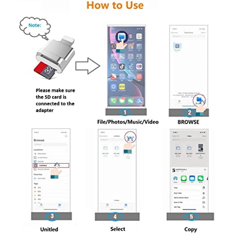 Micro SD card reader for iPhone iPad adapter memory card reading is suitable for iPhone 13/12/Pro/11/X/XR/Max/8, supports iOS 13 and above systems