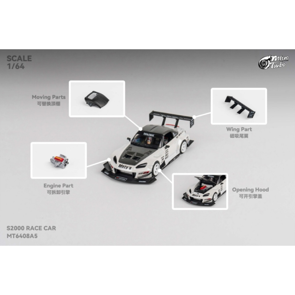MicroTurbo 1/64 Honda S2000 Race Car - Metalic White