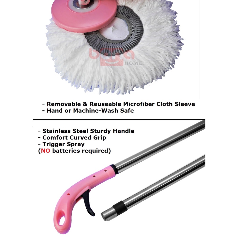 Microfiber Floor Cleaning Stainless Steel Spray Mop with 360 Degree Swivel Head (WYL05A PINK)