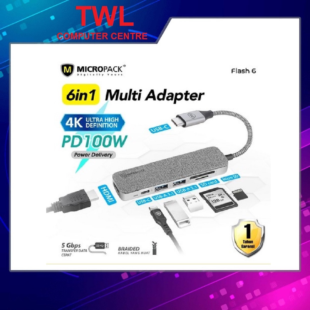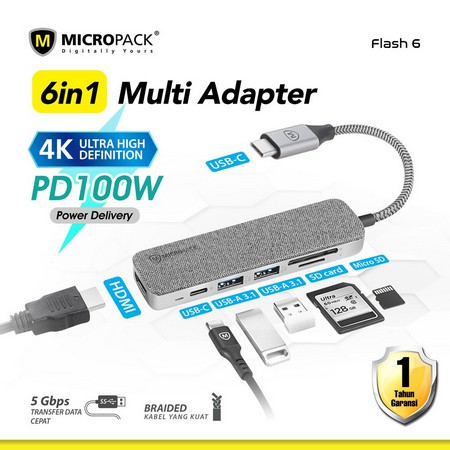 Micropack Data Converter Flash 6 USB C to USB A/SD/MMC/HDMI/USB C In (MDC-6)(1Y Warranty)