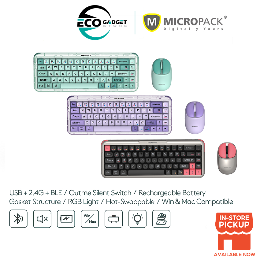 Micropack Rechargeable 2.4G Bluetooth Wireless Mechanical Silent 3 Modes With 5 Channels RGB Lighting Keyboard K-168WM