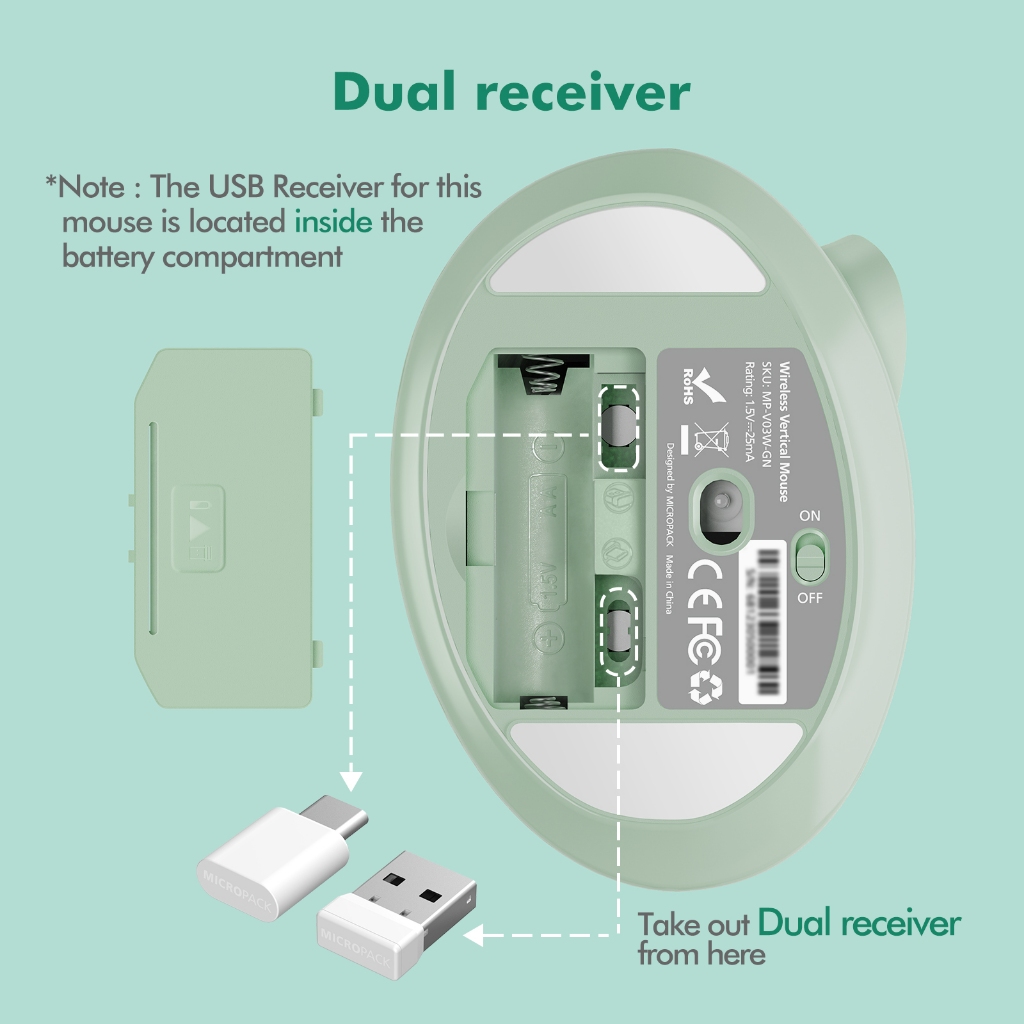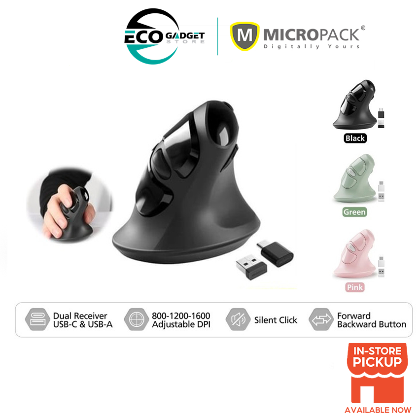 Micropack USB-C USB-A Dual Receiver Vertical Wireless Mouse MP-V03W