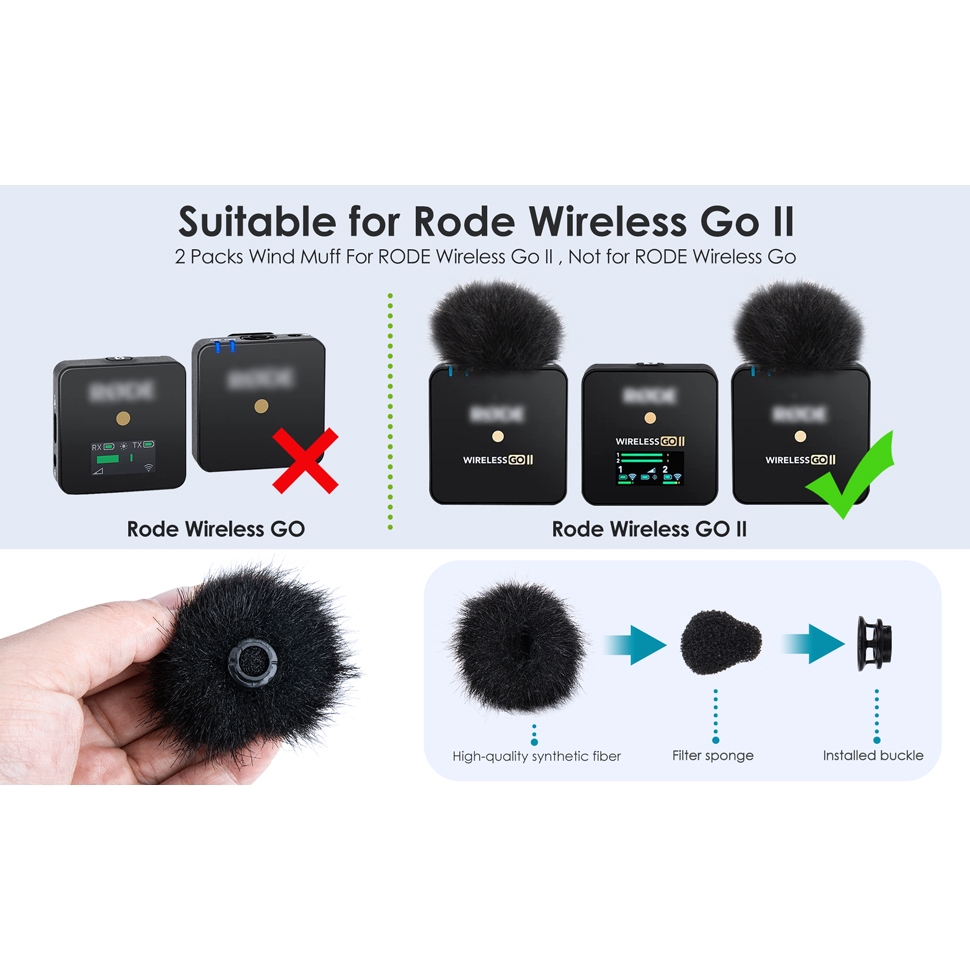 Microphone Wind Muff Compatible with RODE Wireless Go 2, Professional Pop Filter Designed for RODE Compact Wireless Microphone System(2PCS)