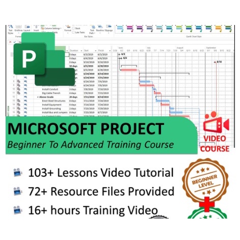 Microsoft Project Beginner To Advanced Level Training Video Course Lessons Video Tutorial Resource Files Provided