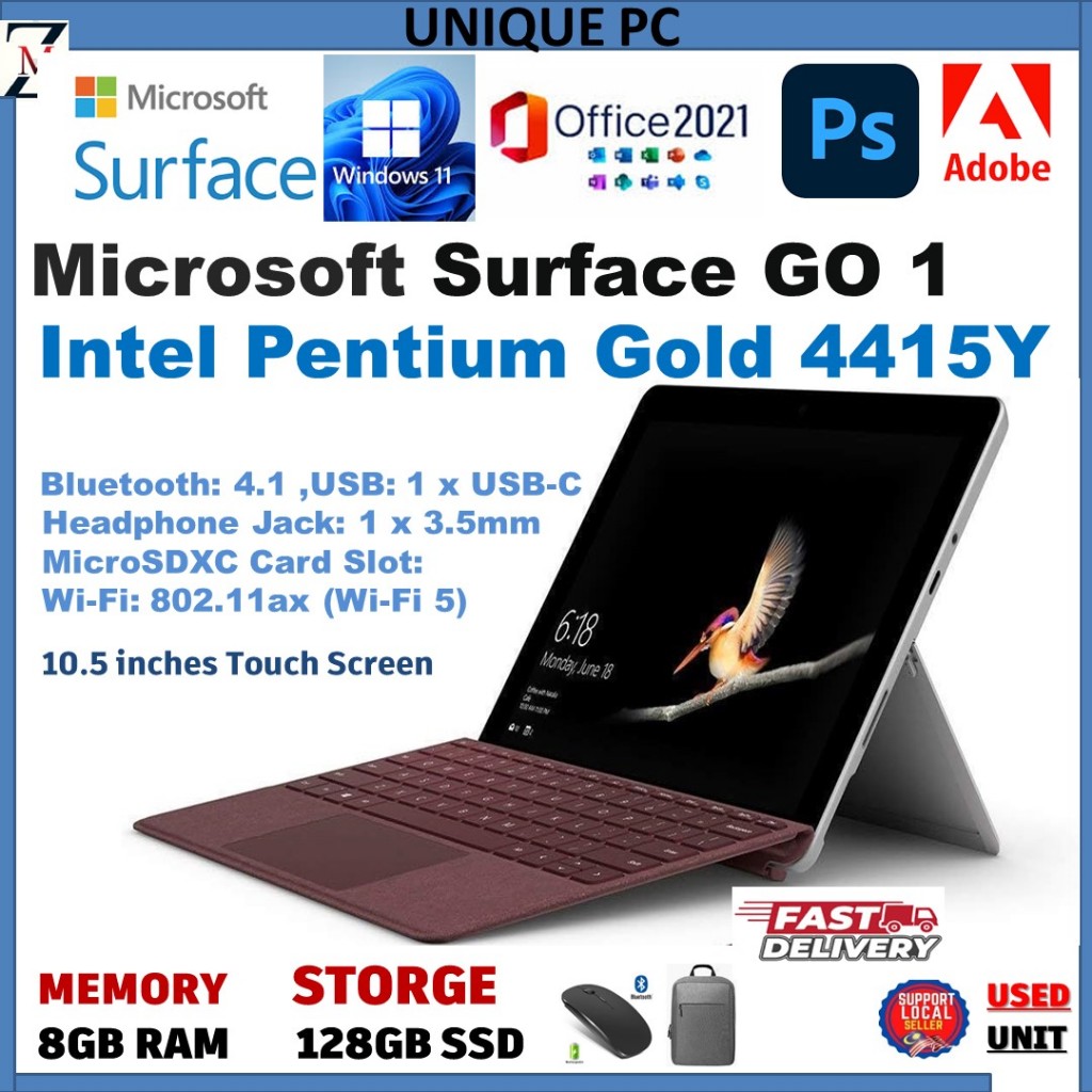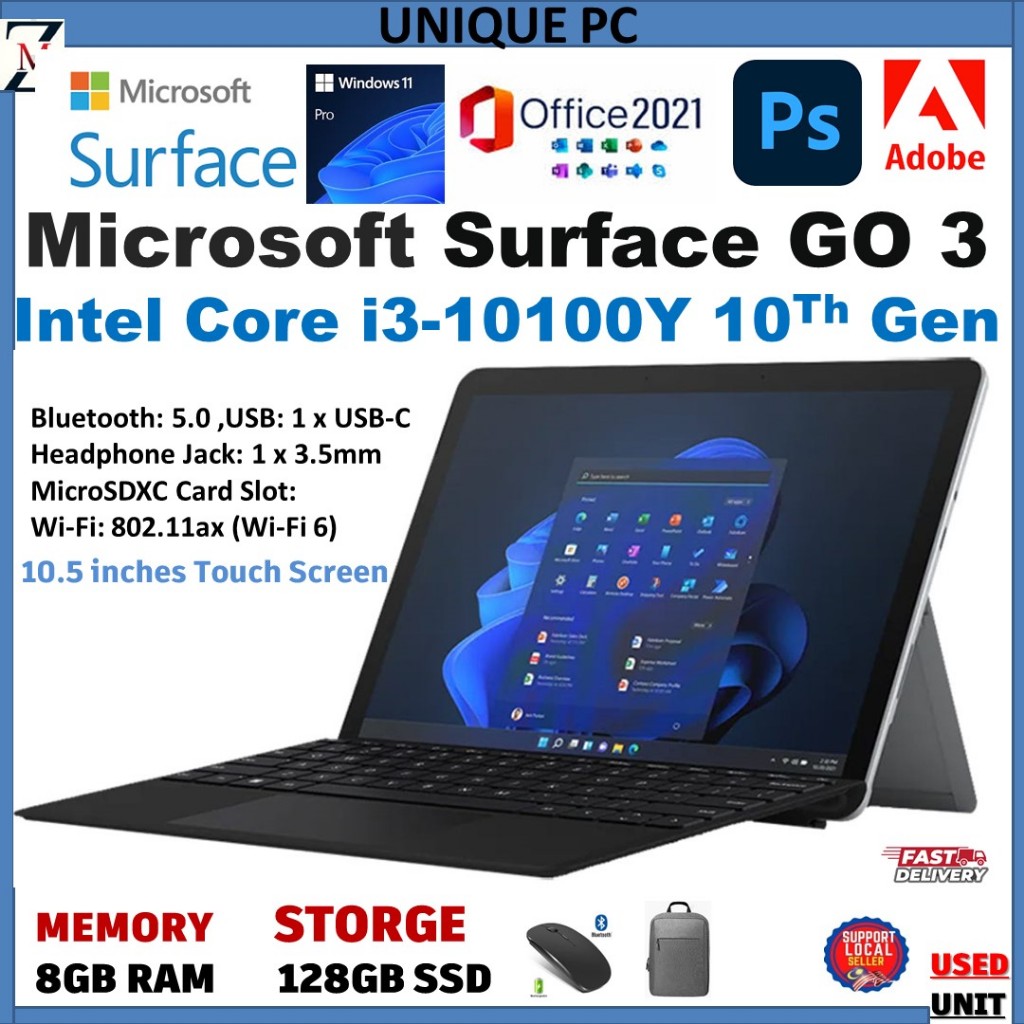 Microsoft Surface Go 3 INTEL CORE i3-10100Y 10Th Gen - Pentium Gold 6500Y 8GB LPDDR3 RAM - 128GB SSD 10.5" Touchscre
