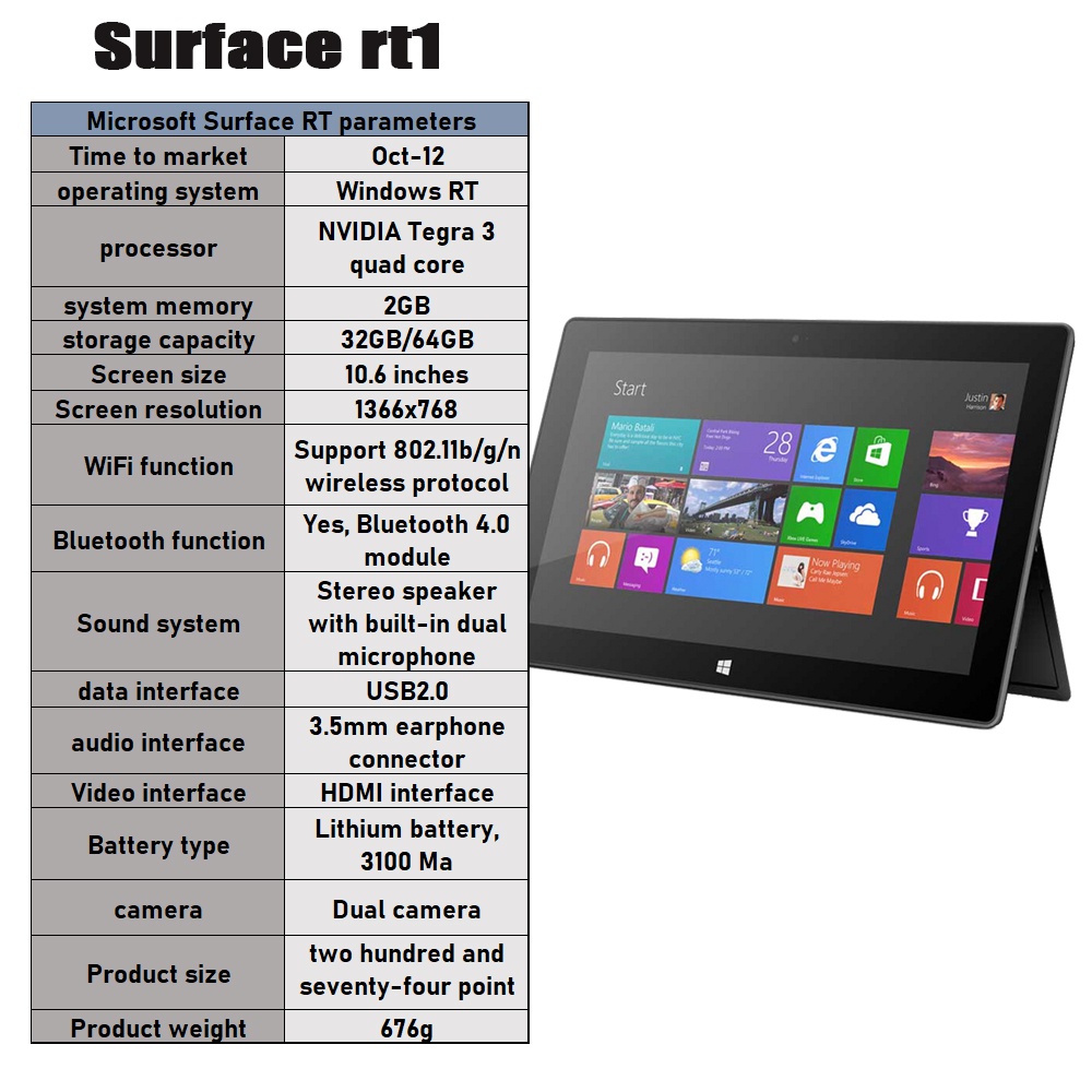 Microsoft Surface RT/Surface 2(rt2) 32GB/64GB 2GB RAM Nvidia Quad-core 10.6-inch touch screen Office learning computer Windows rt 8.1 System
