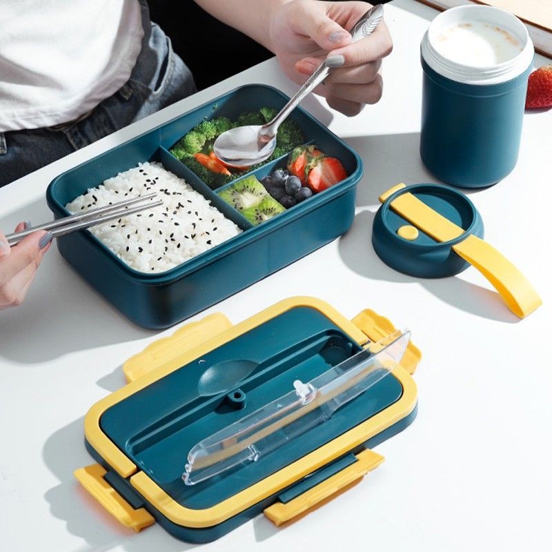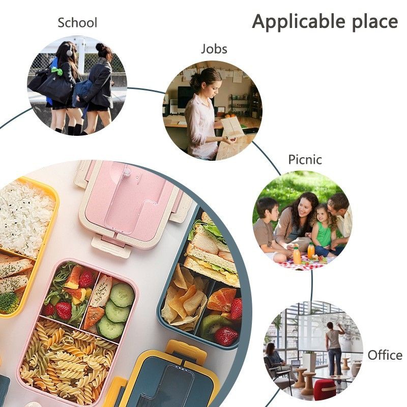 Microwave Lunch Box Dinnerware Food Creative Wheat Straw Lunch Box with Spoon Chopsticks Eco-Friendly