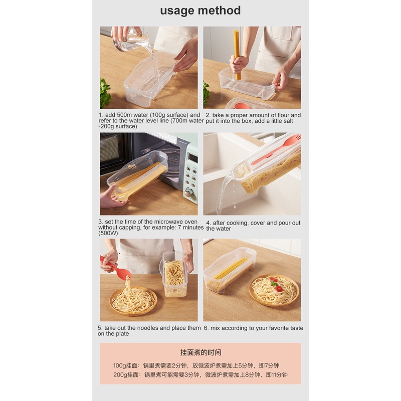 Microwave Noodle Box Pasta Cooking Box With Spoon Noodles Storage Spaghetti Draining Fresh-keeping Box Portable Steaming Container flowerdance