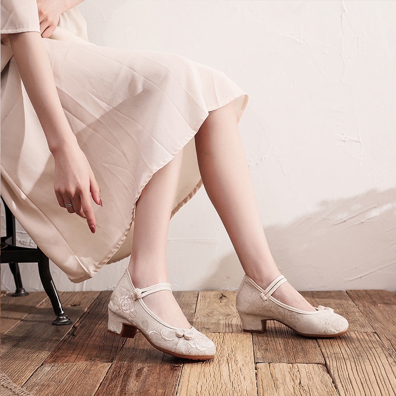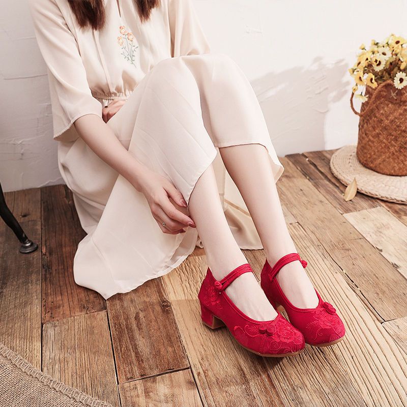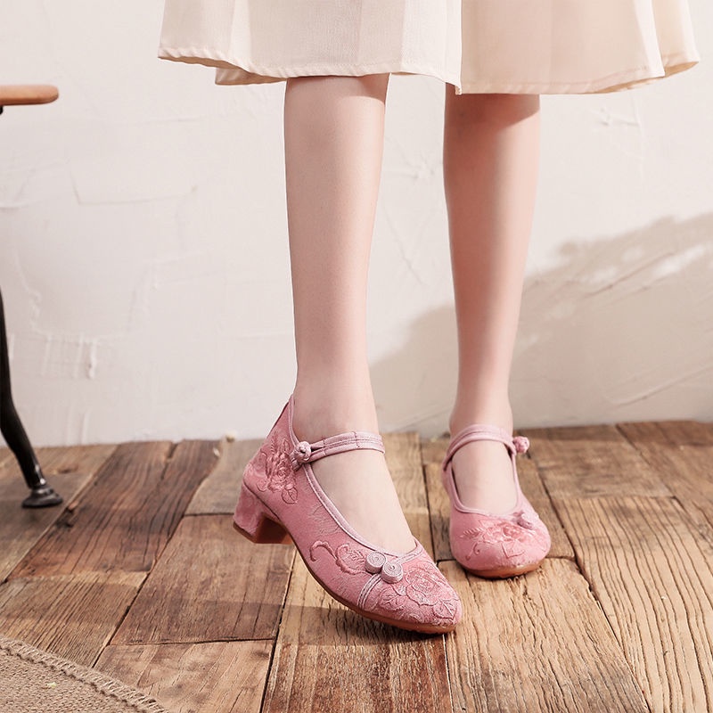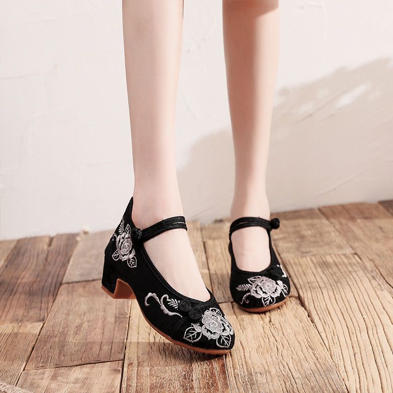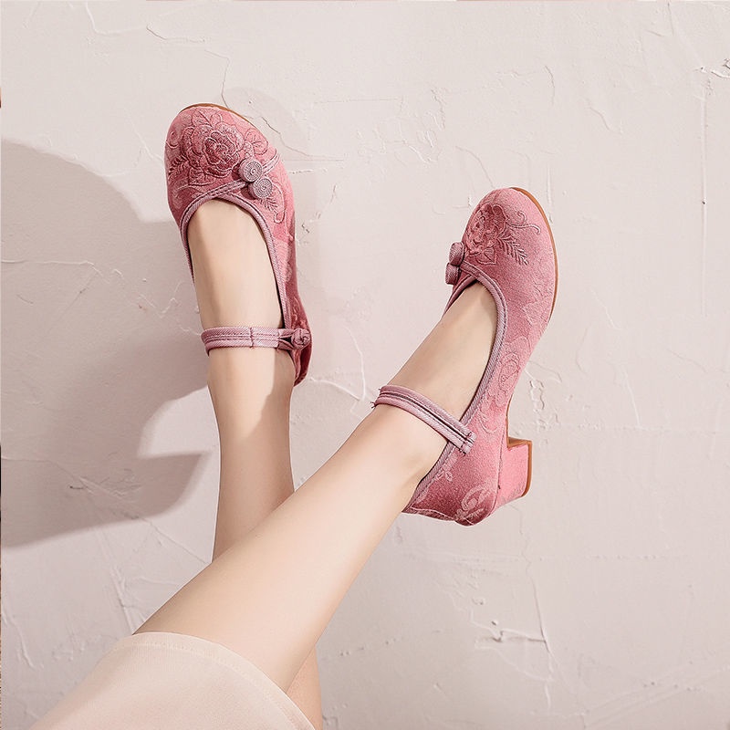 Mid-Heel Ethnic Style Hanfu Shoes Women Old Beijing Embroidered Cheongsam Antique Heightening Single Dance xiaoyanglv.my2022.8.20