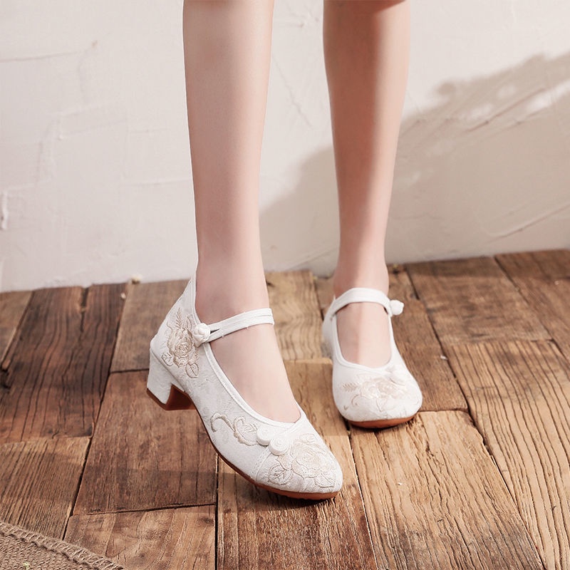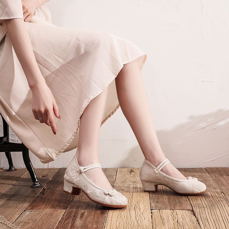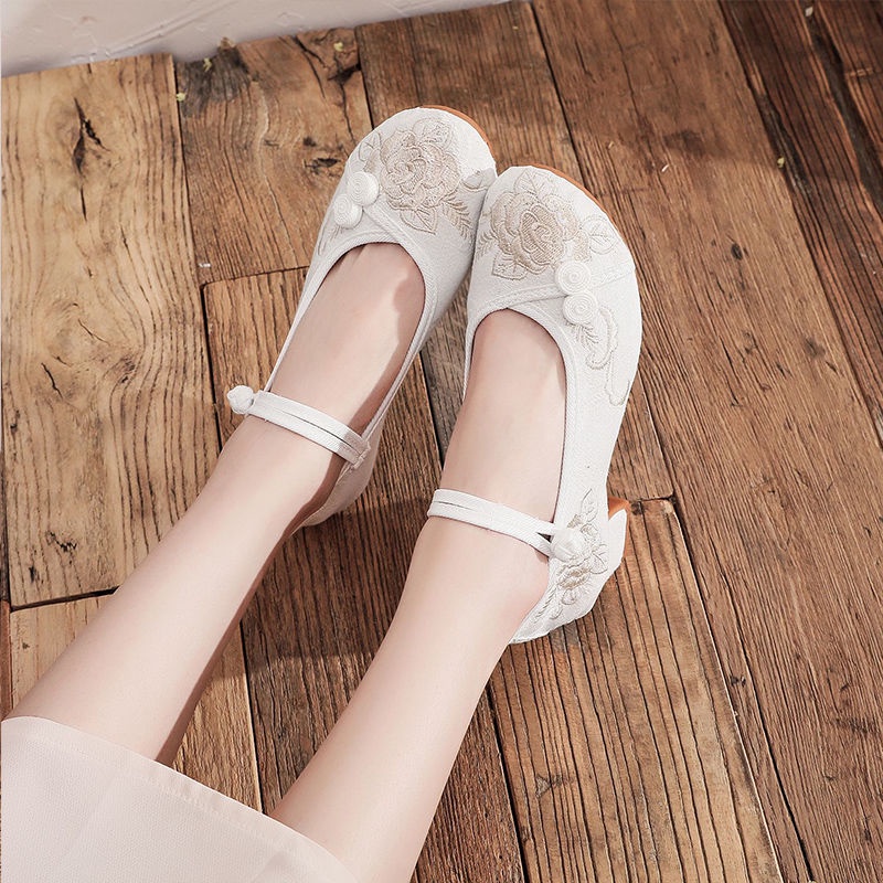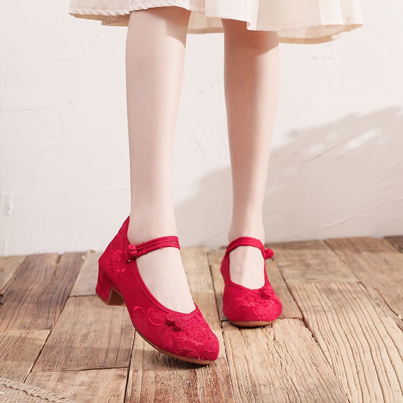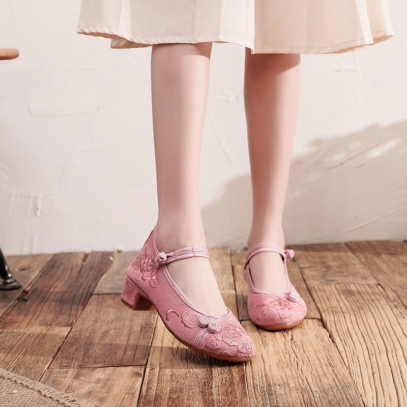 Mid-Heel Ethnic Style Hanfu Shoes Women Old Beijing Embroidered Cheongsam Antique Heightening Single Dance xiaoyanglv.my2022.8.20