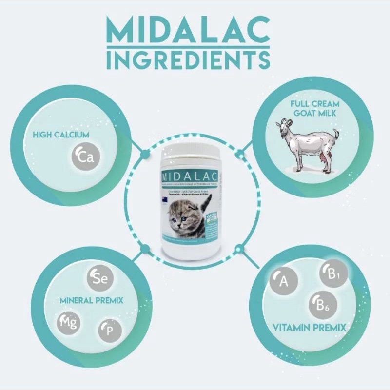 Midalac ORIGINAL Goat's Milk Powder For Cat & Kitten 200g[BUY 1 FREE 1 NURSING BOTTLE]
