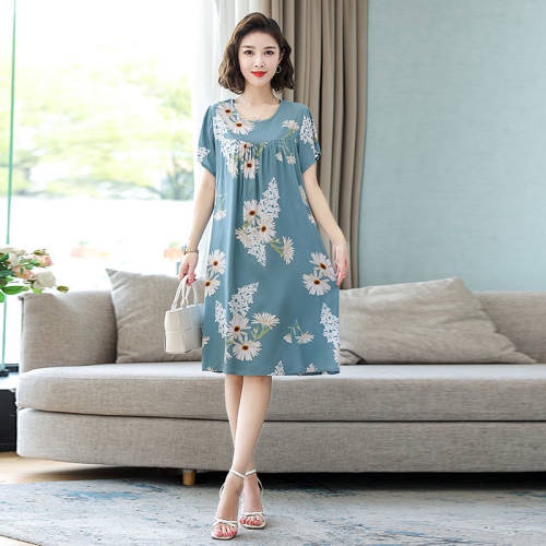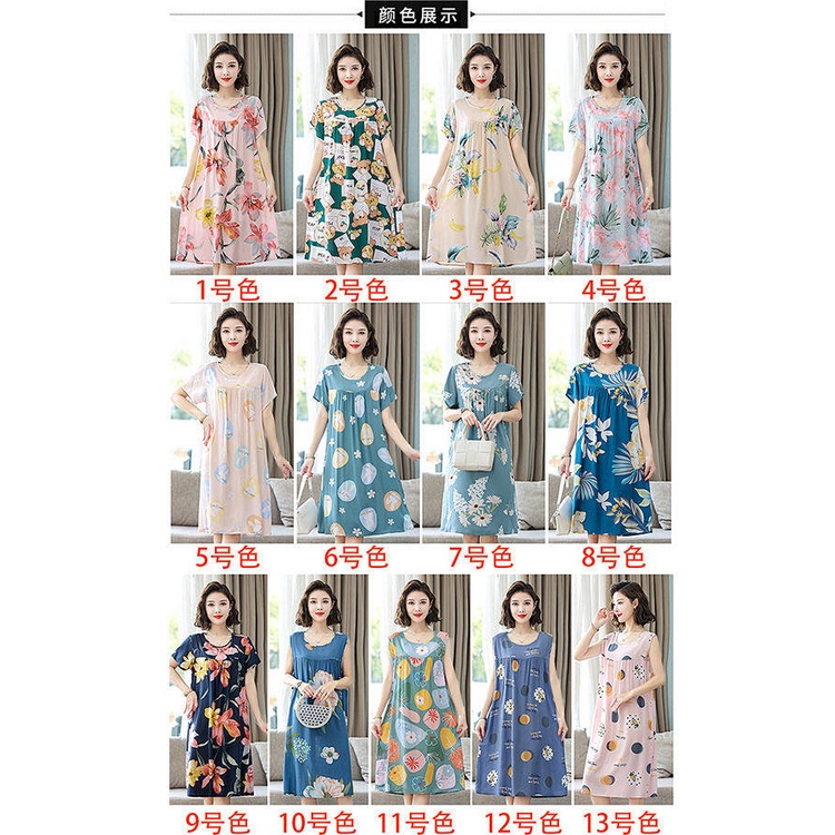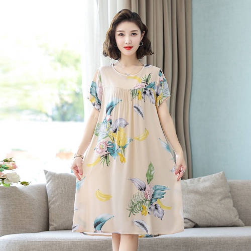 Middle-Aged and Elderly Nightdress Women's New Cotton Silk Mom Western Style Mid-Length Pajamas Large Size Loose Home Dress for the Elderly Ladies pajama Night gown