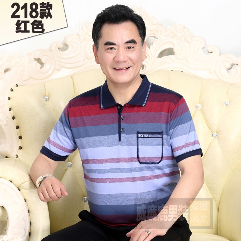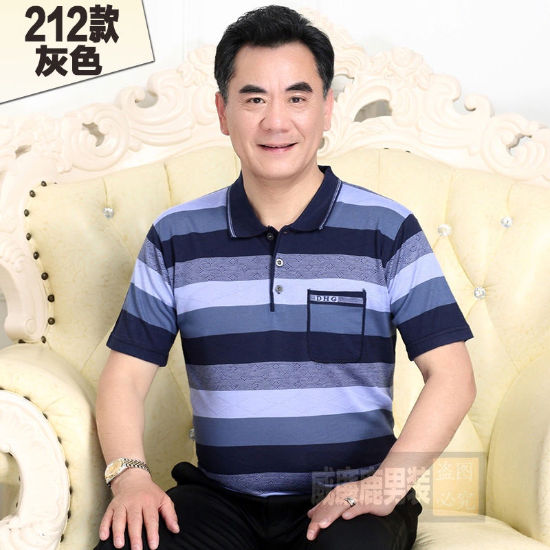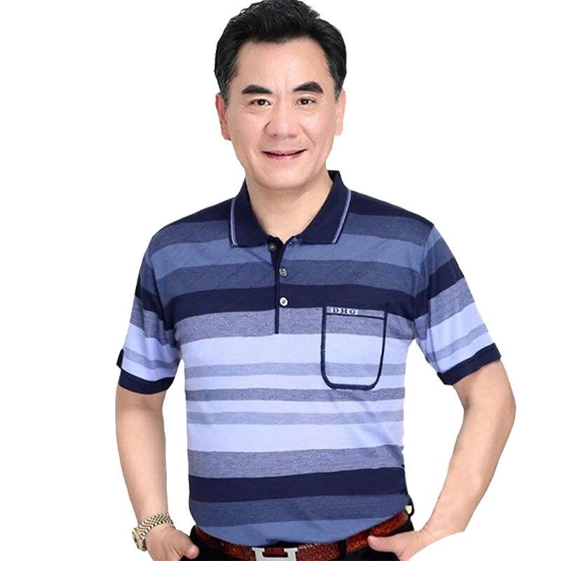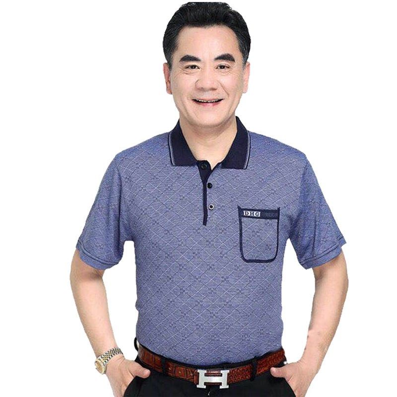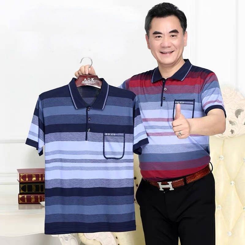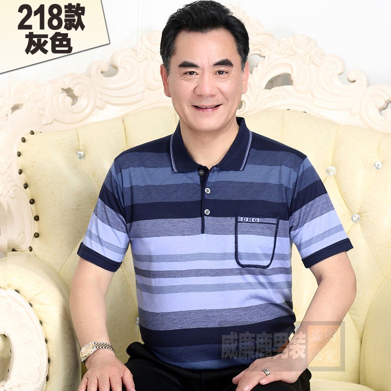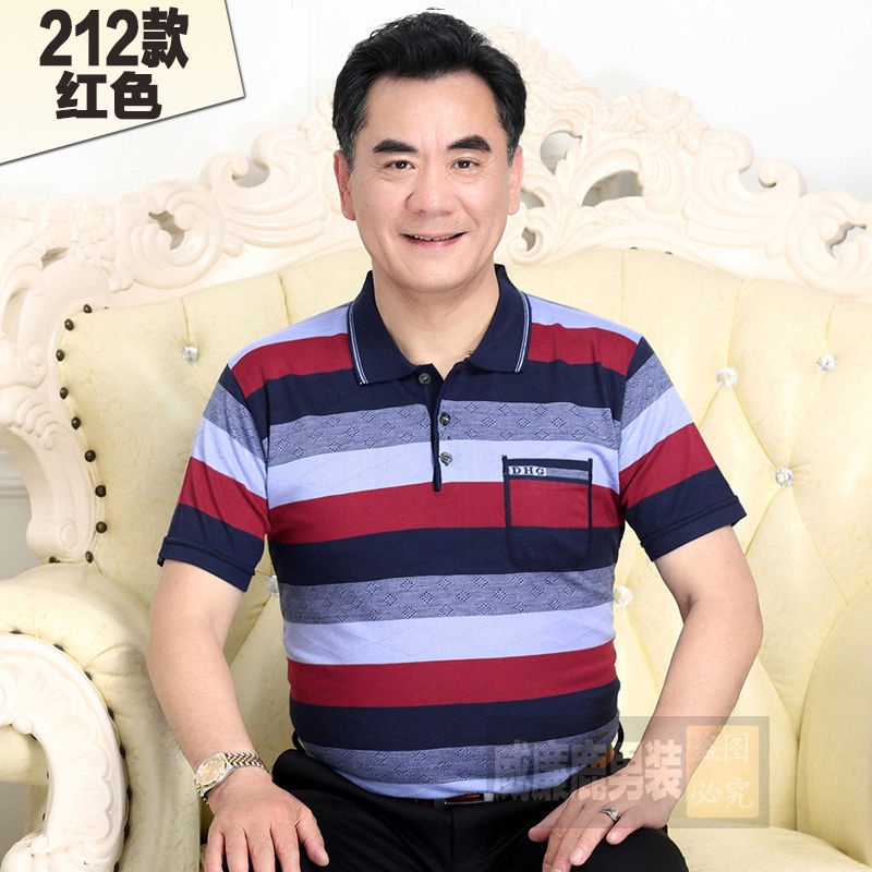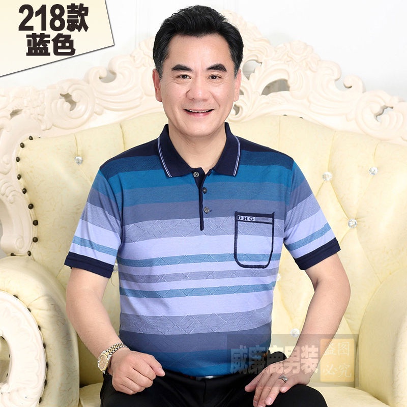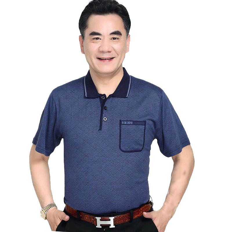 Middle aged men's dad short sleeve t-shirt men's pocket ice silk light cotton T-shirt 40-60 years old grandpa's top 70 chs88.my