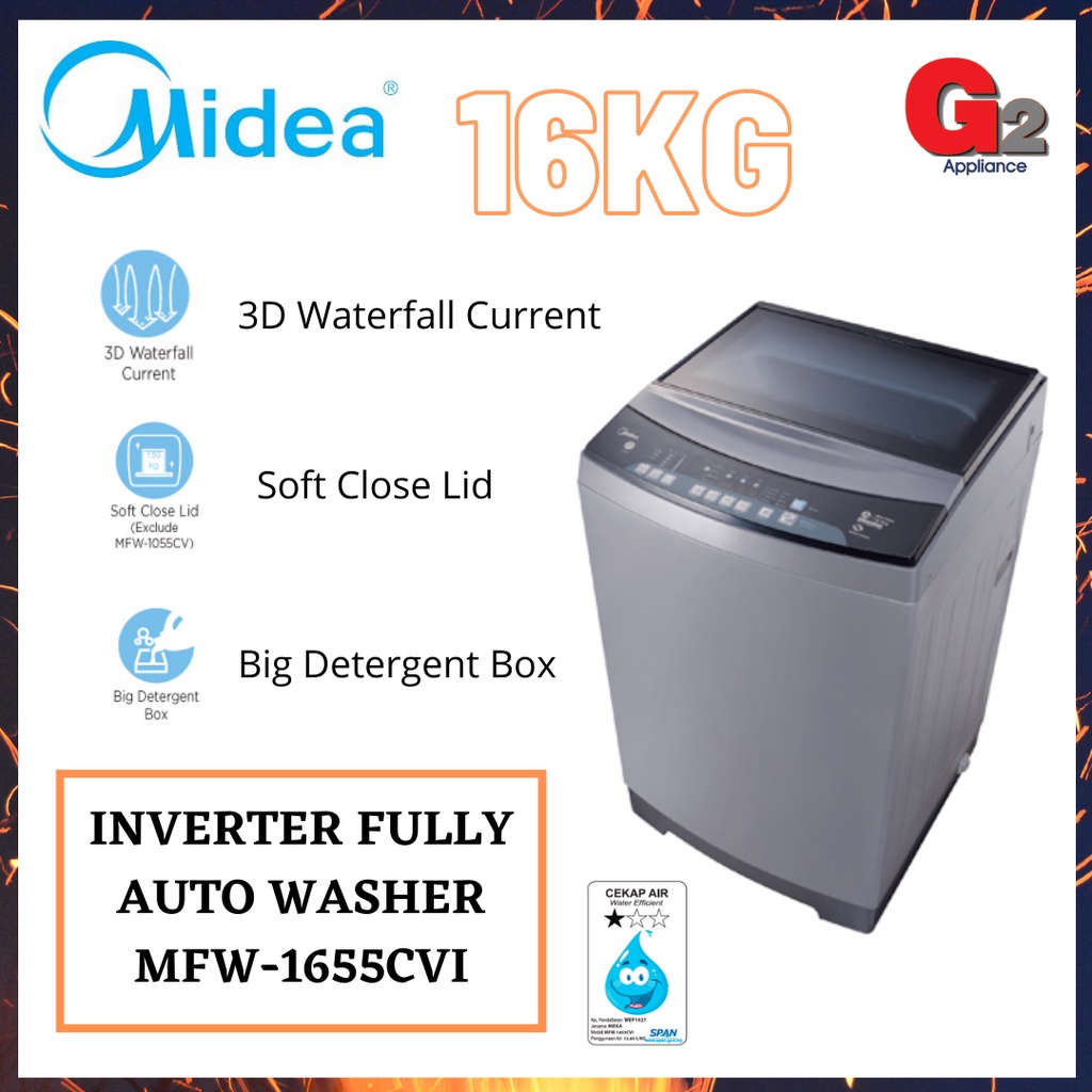 Midea (READY STOCK) Inverter Fully Auto Washing Machine 16kg - Midea Warranty Malaysia
