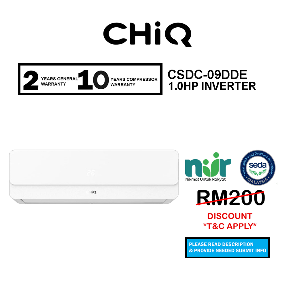 (SEDA) Midea 1.0HP R32 MSMF-10CRN8 Non Inverter Air Conditioner / Chiq 1.0HP CSC-09DDA Aircond / Inverter CSDC-09DDE
