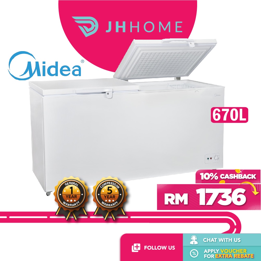 Midea 670L Chest Freezer WD-670W With White Inner Wall | Peti Sejuk