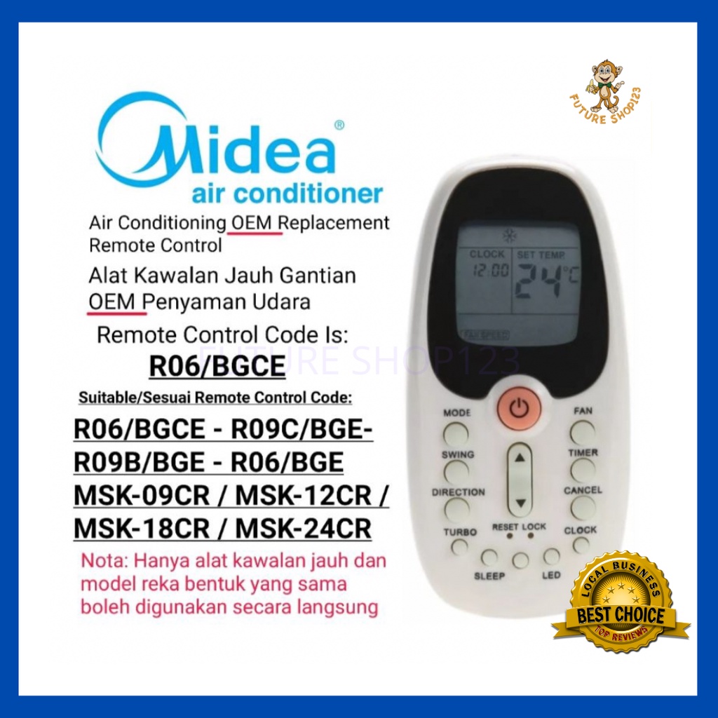 Midea Air Cond Air Conditioner OEM Replacement Remote Control For R06/BGCE, R09M/BGCE,R06/BGE