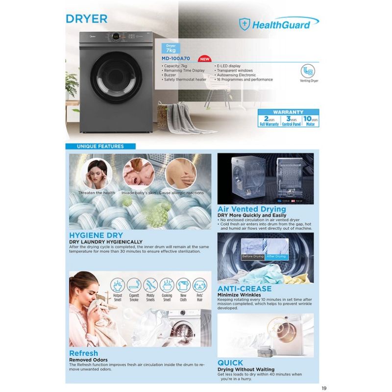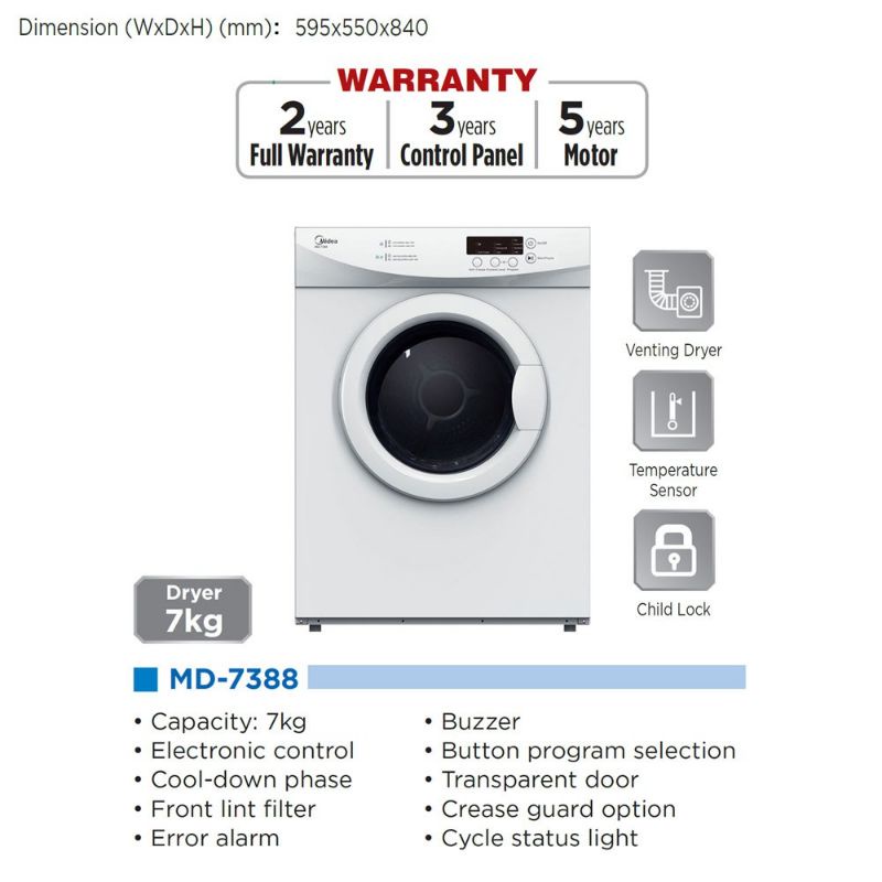 Midea Dryer 7KG Mesin Pengering 7KG MD-7388 and MD100A70