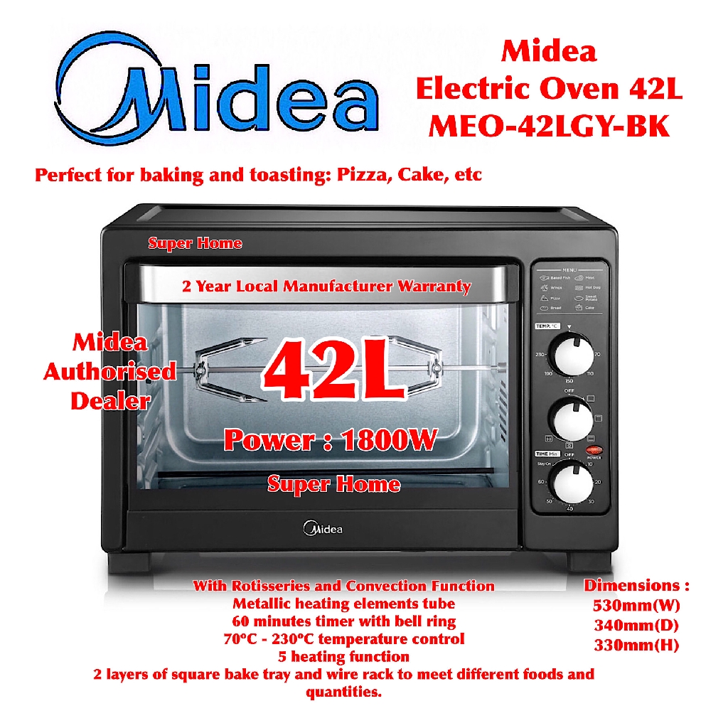 Midea Electric Oven MEO-42LGY-BK Convection Electric Oven (42L)