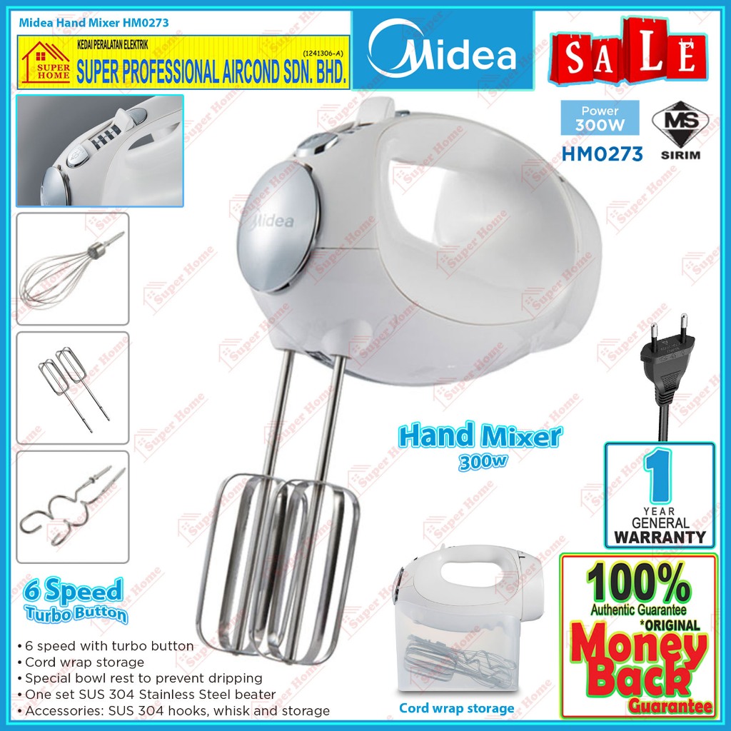 Midea Hand Mixer HM0273 6 Speeds (225W)