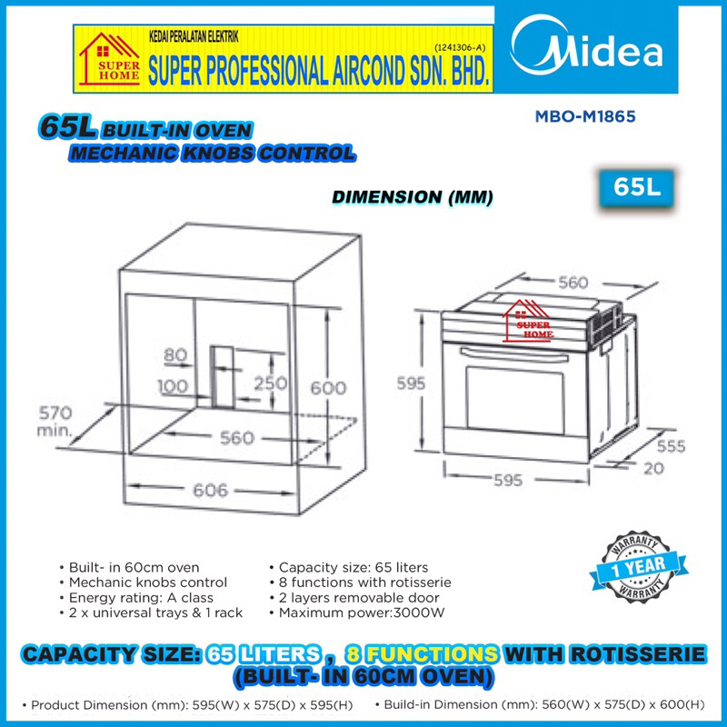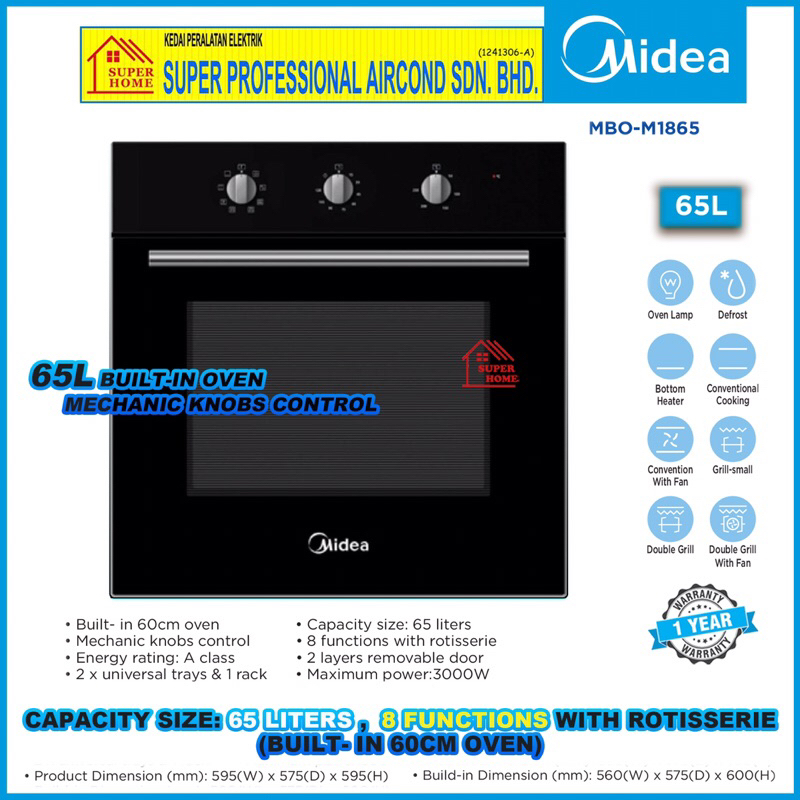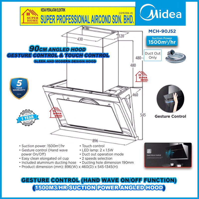 Midea Hood MCH-90J52 90cm Angle Cooker Hood / Midea Built-in Glass Hob MGH-76Q60B / Midea Build-in Oven MBO-M1865 (65L)