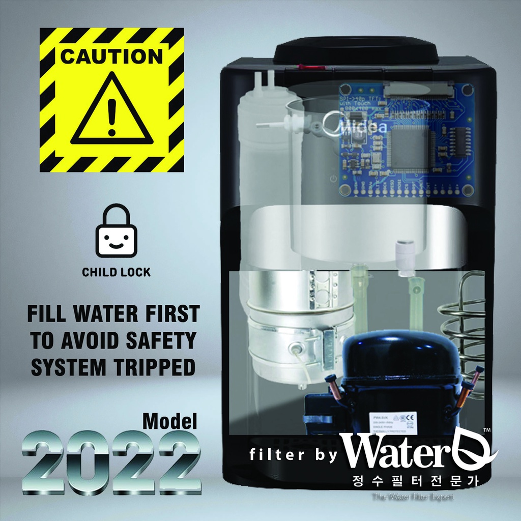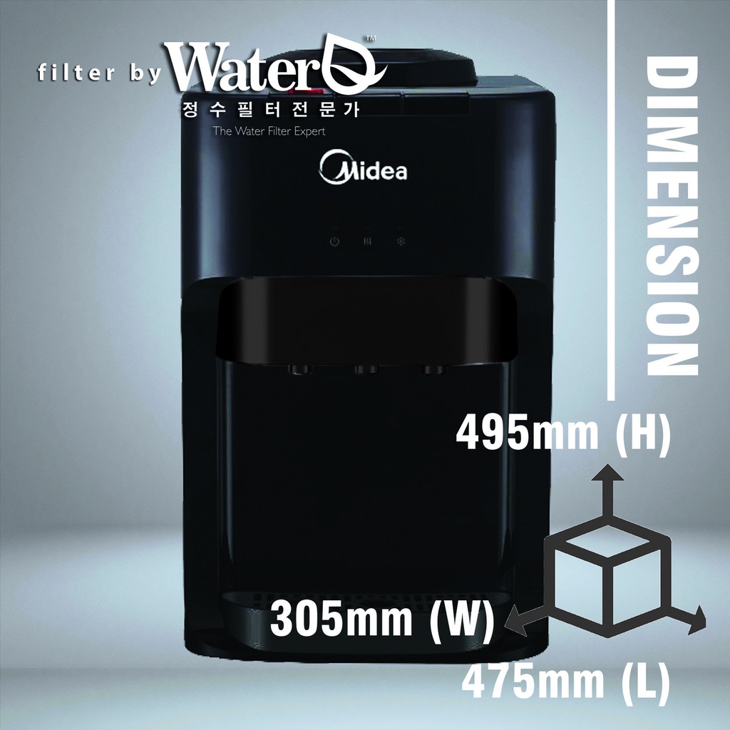 Midea Mild Alkaline Water Dispenser Hot Normal Cold 1635 Black With 4 Halal Korea Technology Water Filter