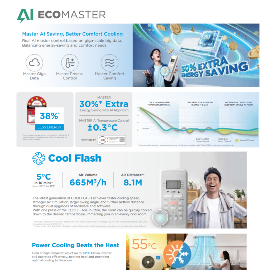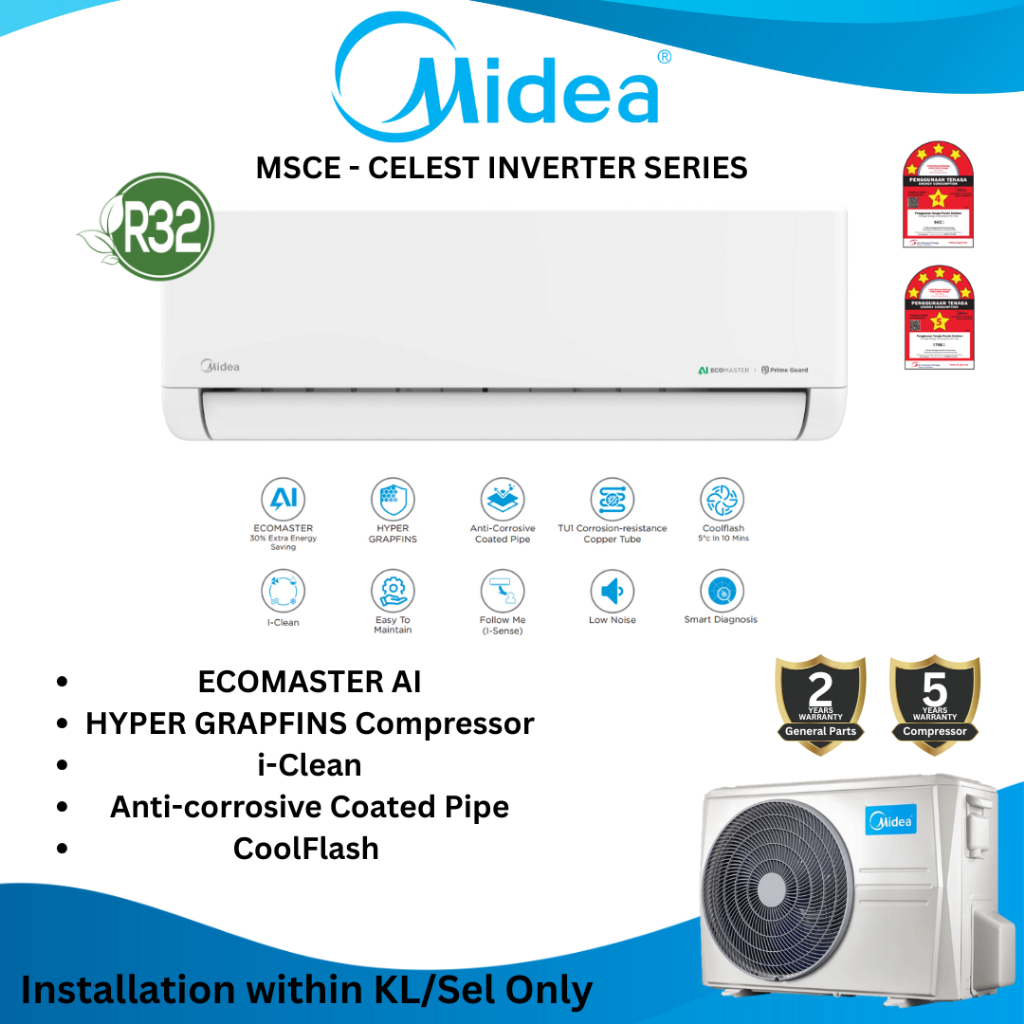 Midea Celest MSCE 4-5 Star R32 Inverter Air Conditioner Aircond 1HP/1.5HP/2HP/2.5HP
