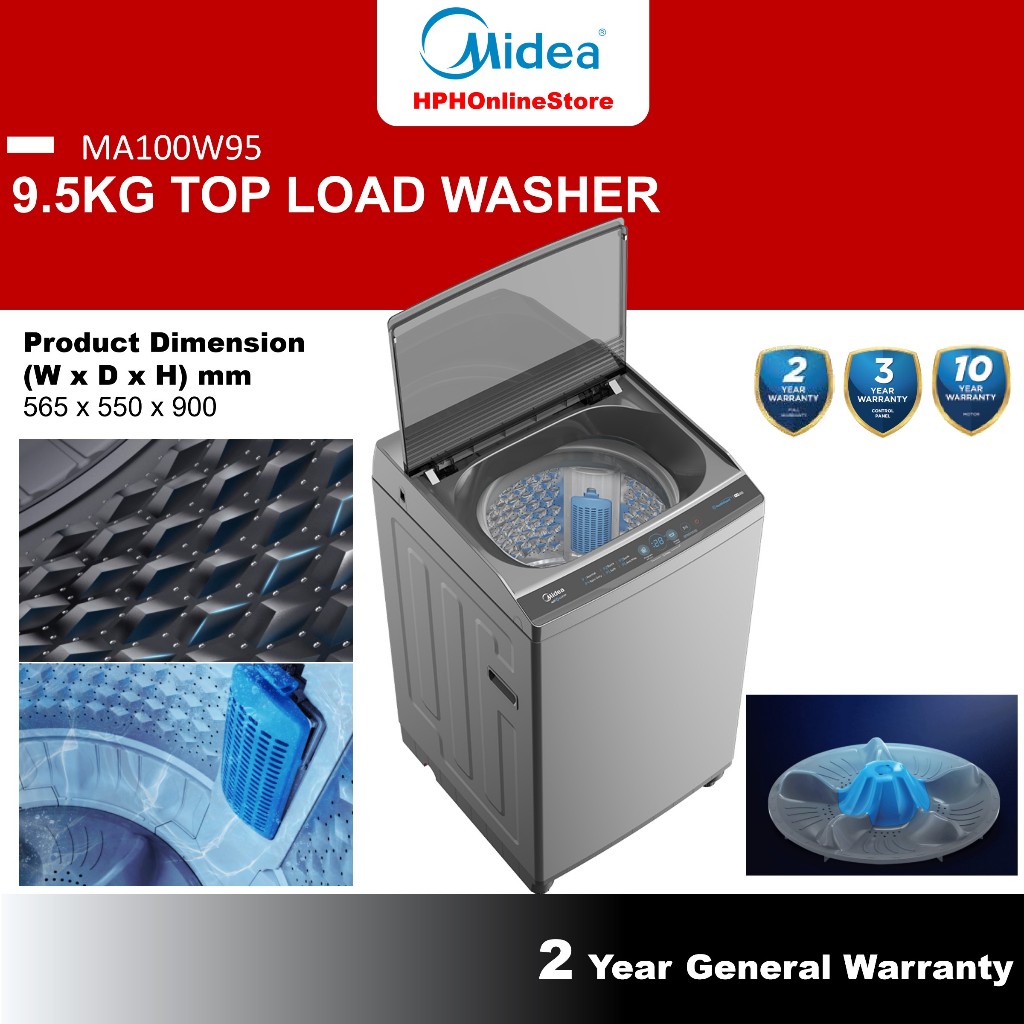 Midea Washing Machine (7.5kg/8.5kg/9.5kg) Top Load Fully Auto MA100W75 MA100W85 MA100W95