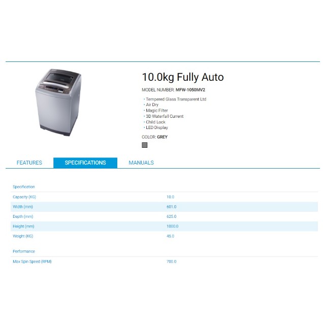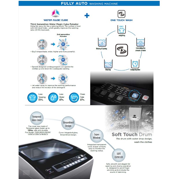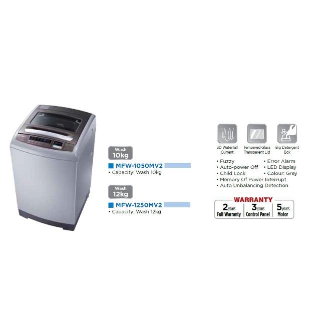 Midea Washing Machine MFW-1050MV2 10KG Fully-Auto Fuzzy Logic Magic Filter Top Load Washer