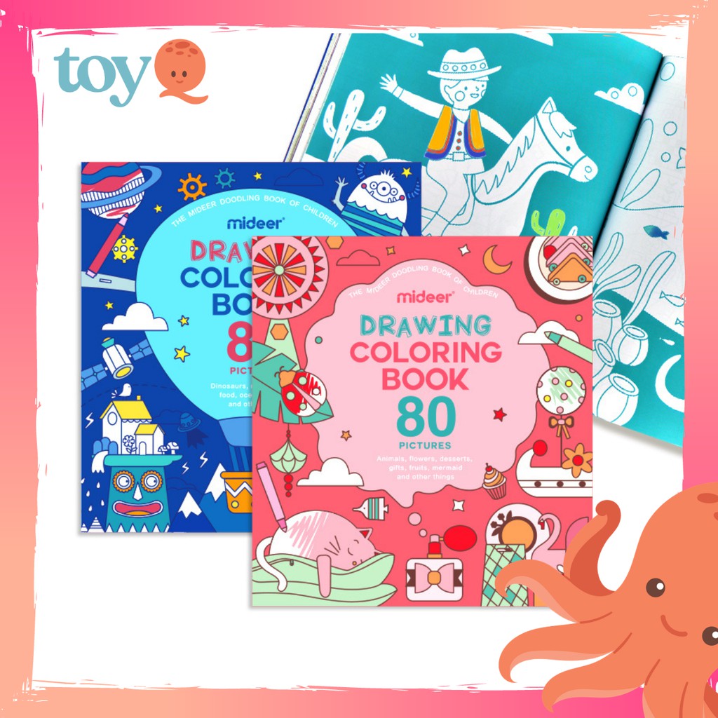 [ Toy Q ] Mideer Drawing Coloring Book 2 designs - Blue Boy & Pink Girl(80 Picture)