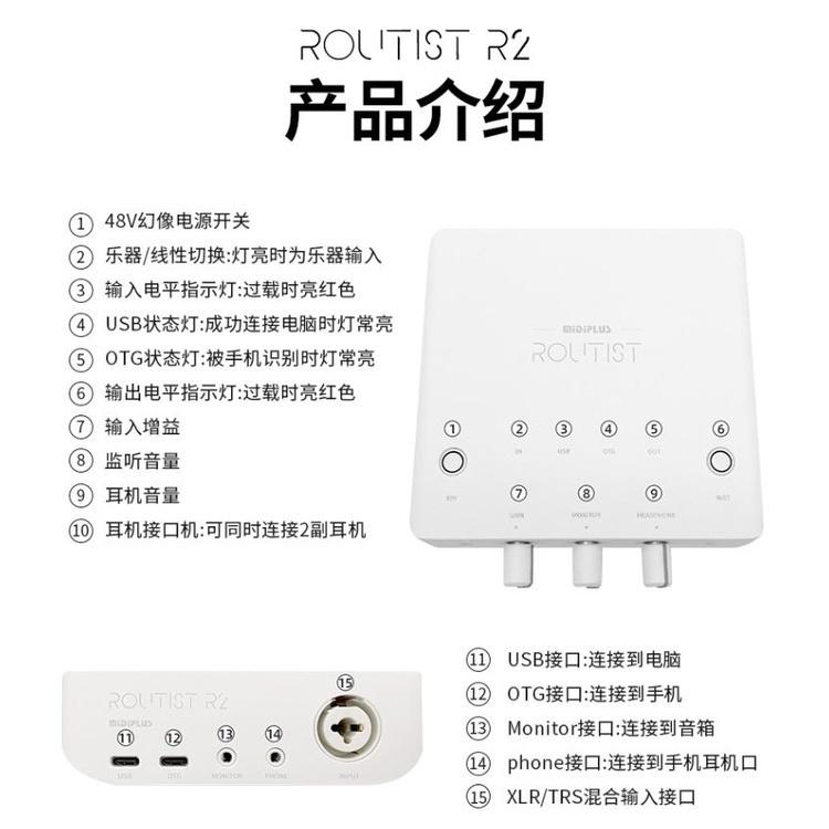 Midiplus R2 sound card computer network K song special external USB sound card recording studio professional recording sound card Midi OTG lossless sound card mobile phone live sound card male voice changer