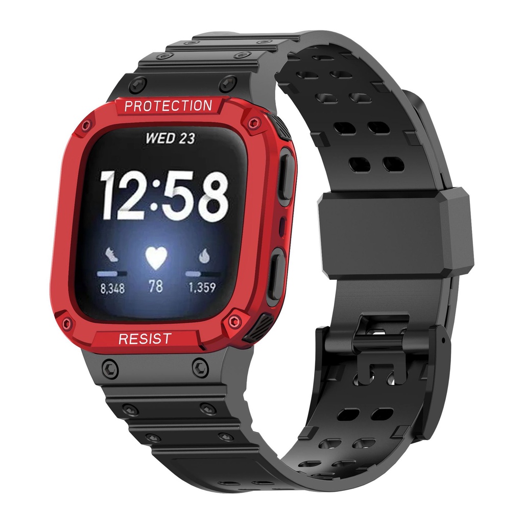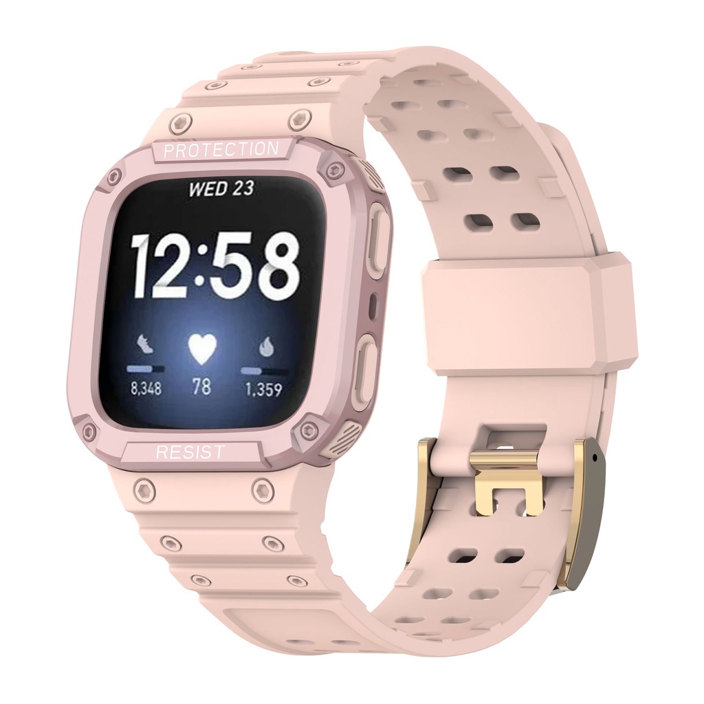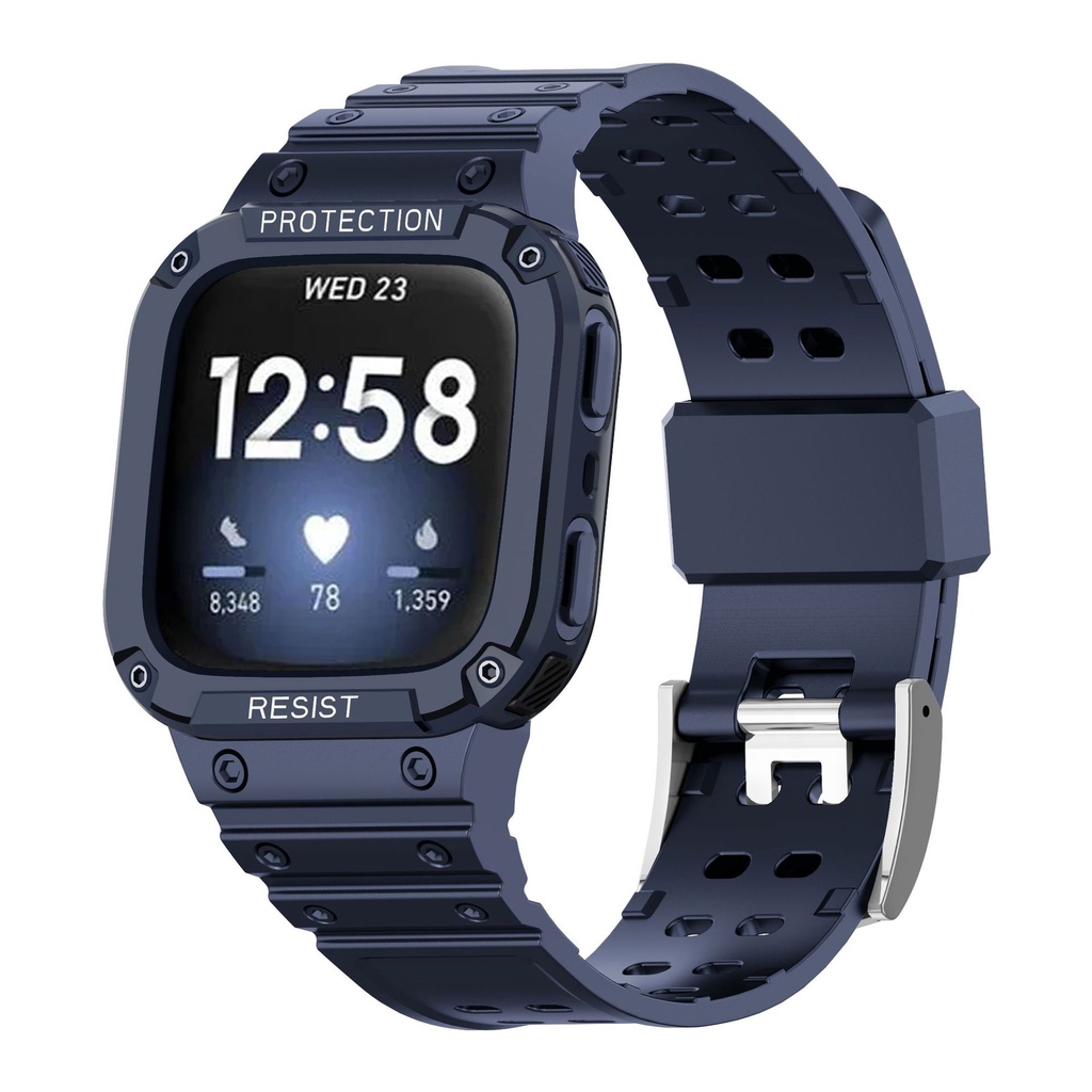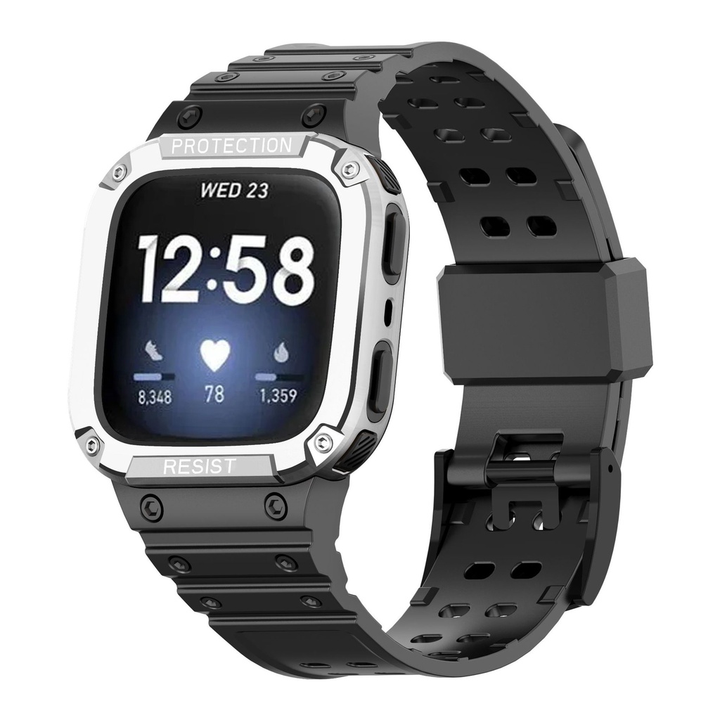 Miimall Fitbit Versa 4/Fitbit Versa 3/Fitbit Sense 2 Band with Case,Sport Screen Protector Strap for Versa Lite/Fitbit Versa/SE, Rugged TPU Protective Replacement Bands