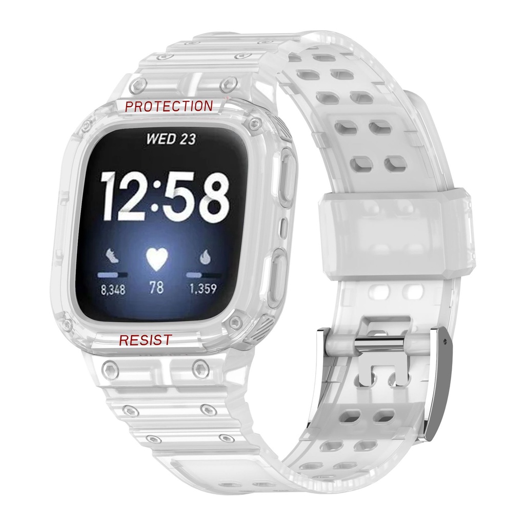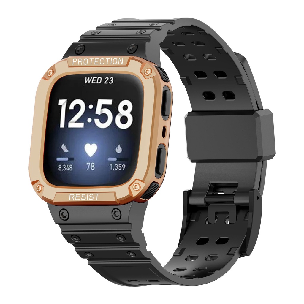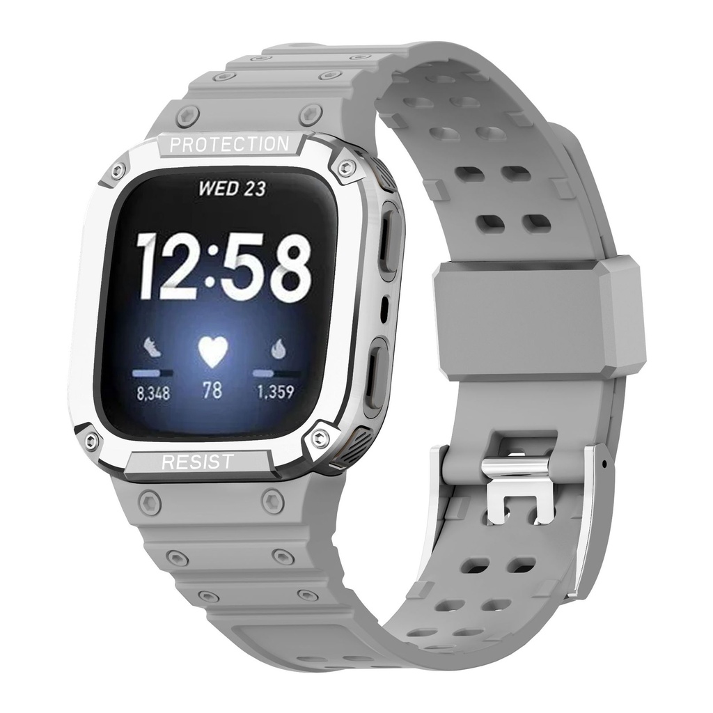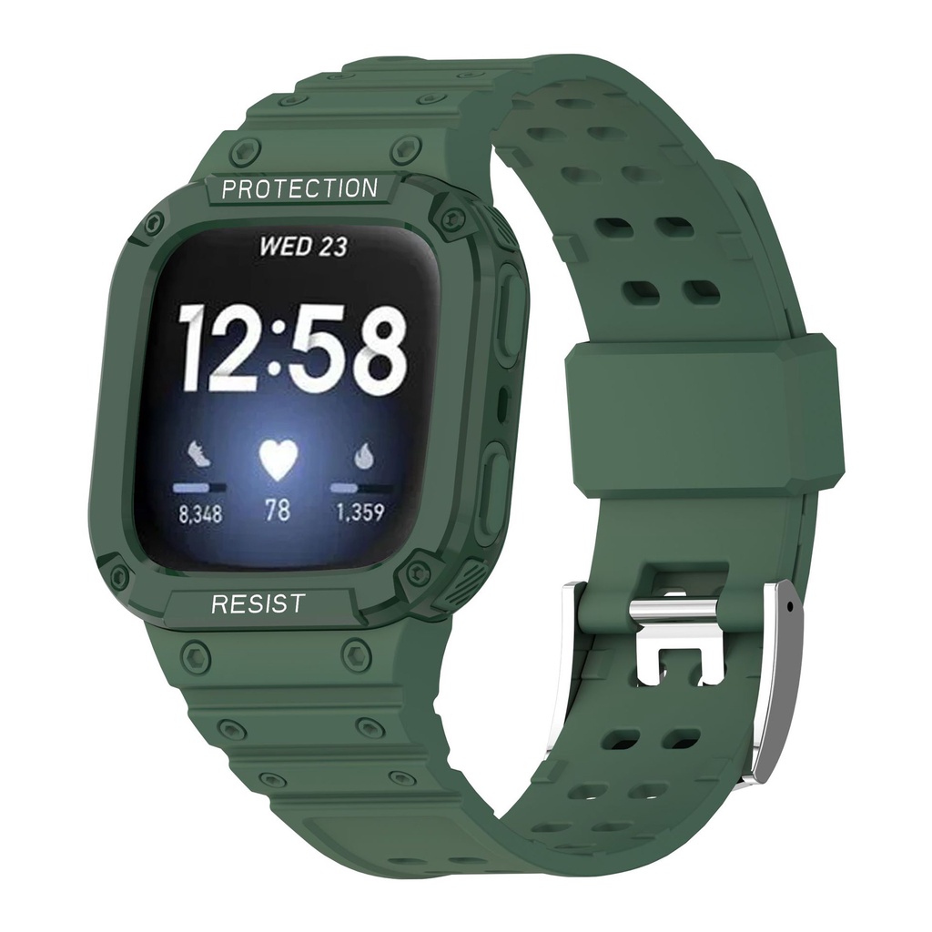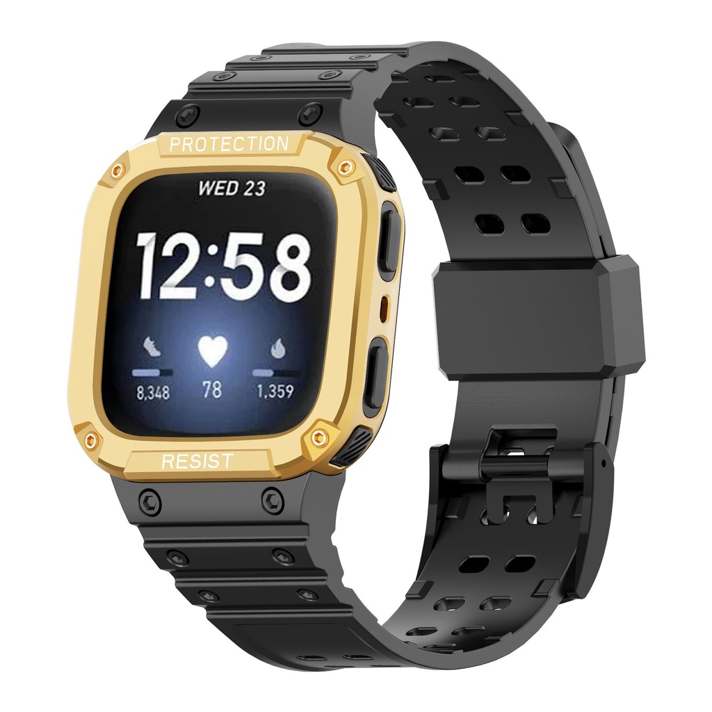 Miimall Fitbit Versa 4/Fitbit Versa 3/Fitbit Sense 2 Band with Case,Sport Screen Protector Strap for Versa Lite/Fitbit Versa/SE, Rugged TPU Protective Replacement Bands